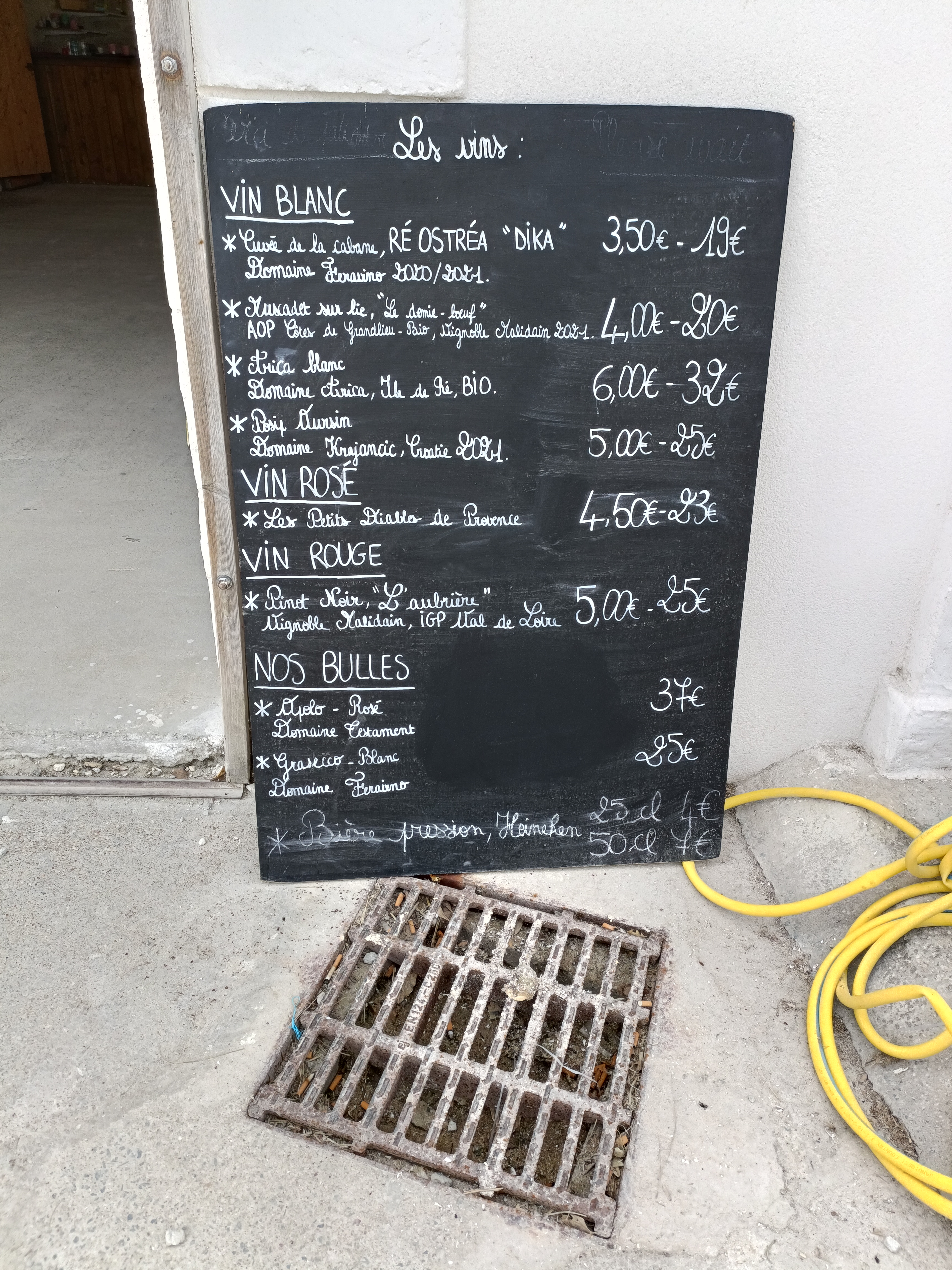 Posté le 24/07/2022 à 11:43"Très jolie vue, les produits sont bien frais, le personnel est agréable. Un peu cher mais c'est la norme sur l'île de ré j'imagine ! Et le TPE remarche donc paiement CB accepté"