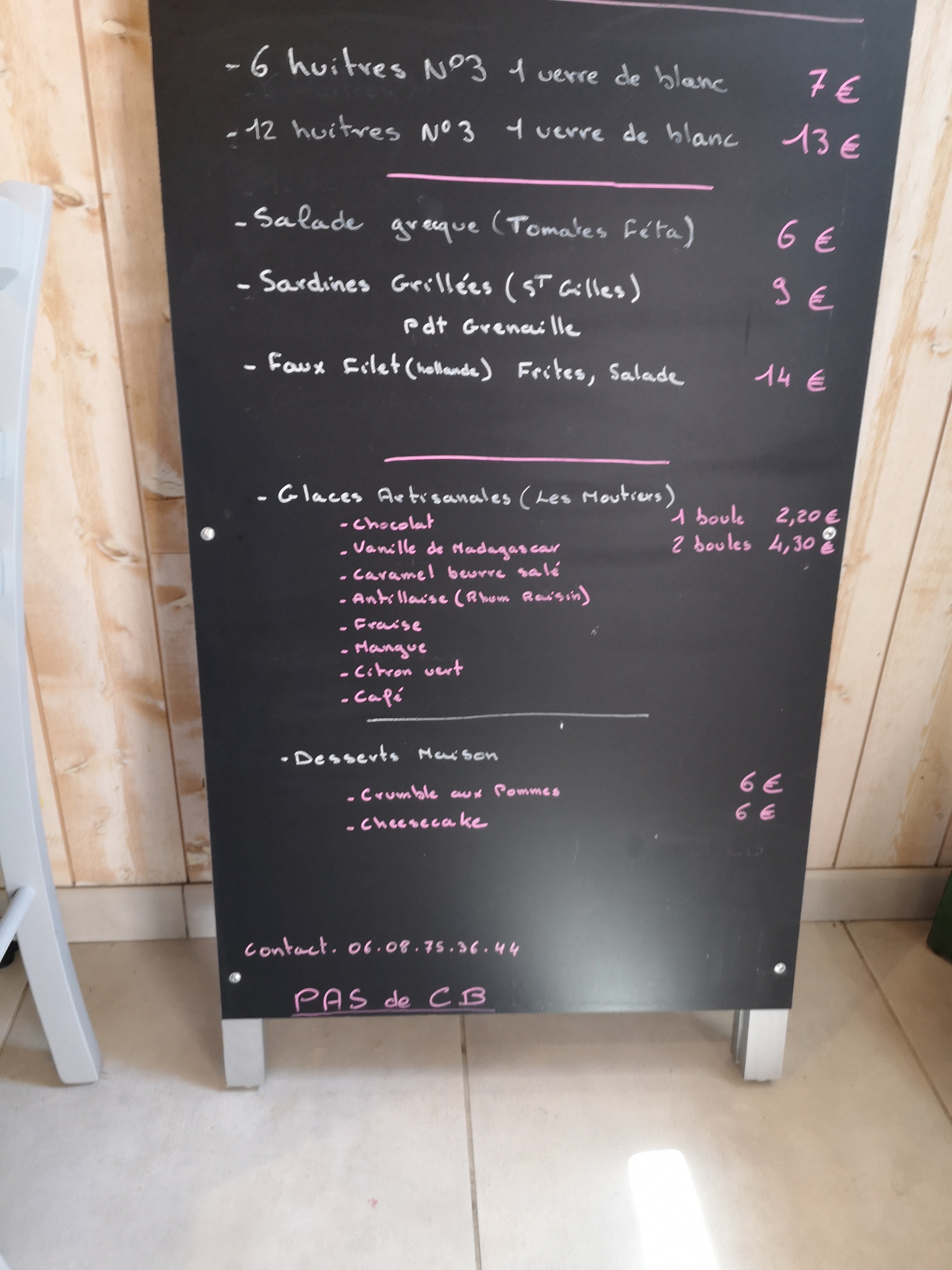 Très bon accueil et très bon rapport qualité prix. 38 € pour 2 Nouveau propriétaire depuis mi-juillet S'appelle maintenant Gratt'huitres