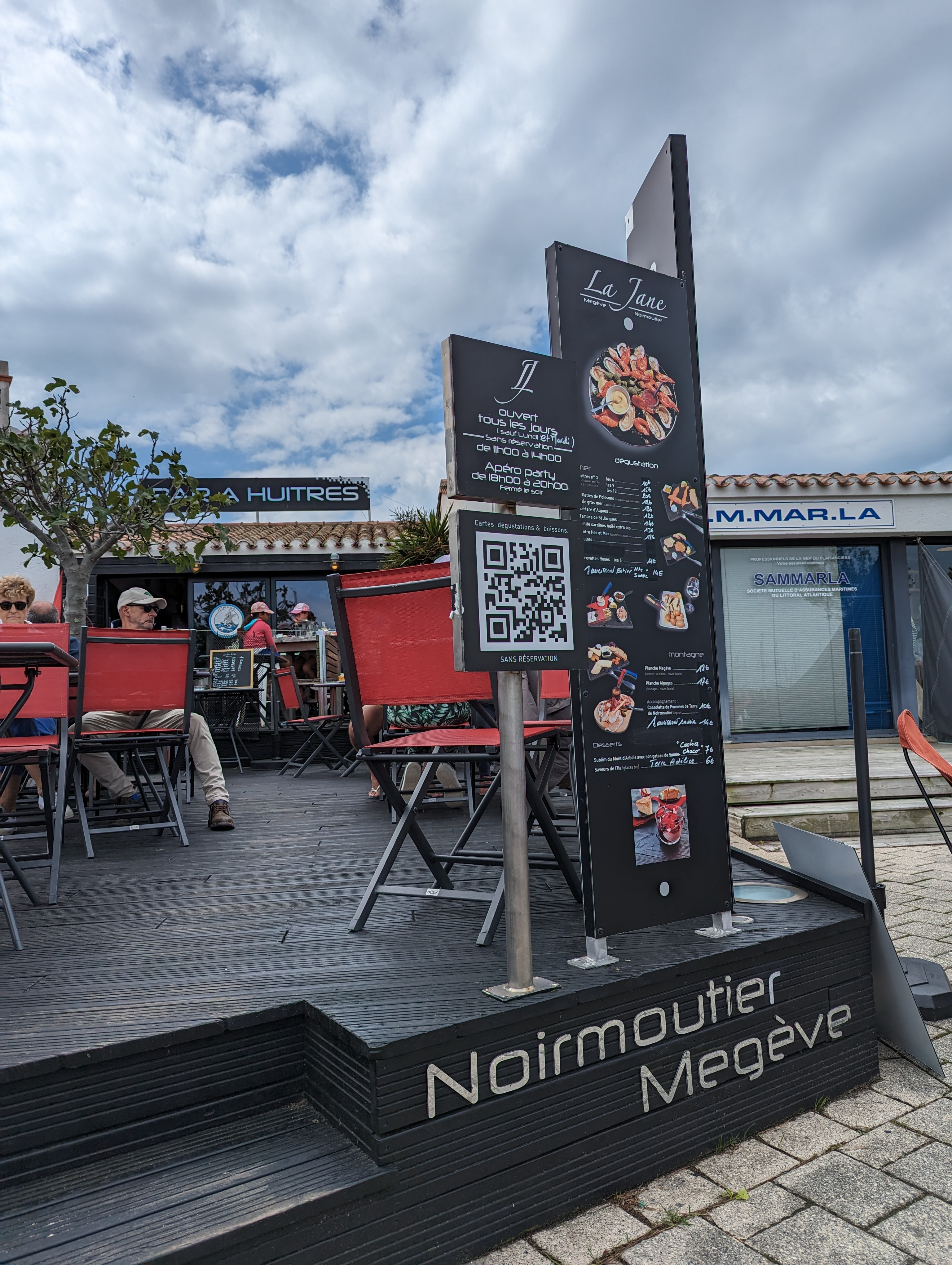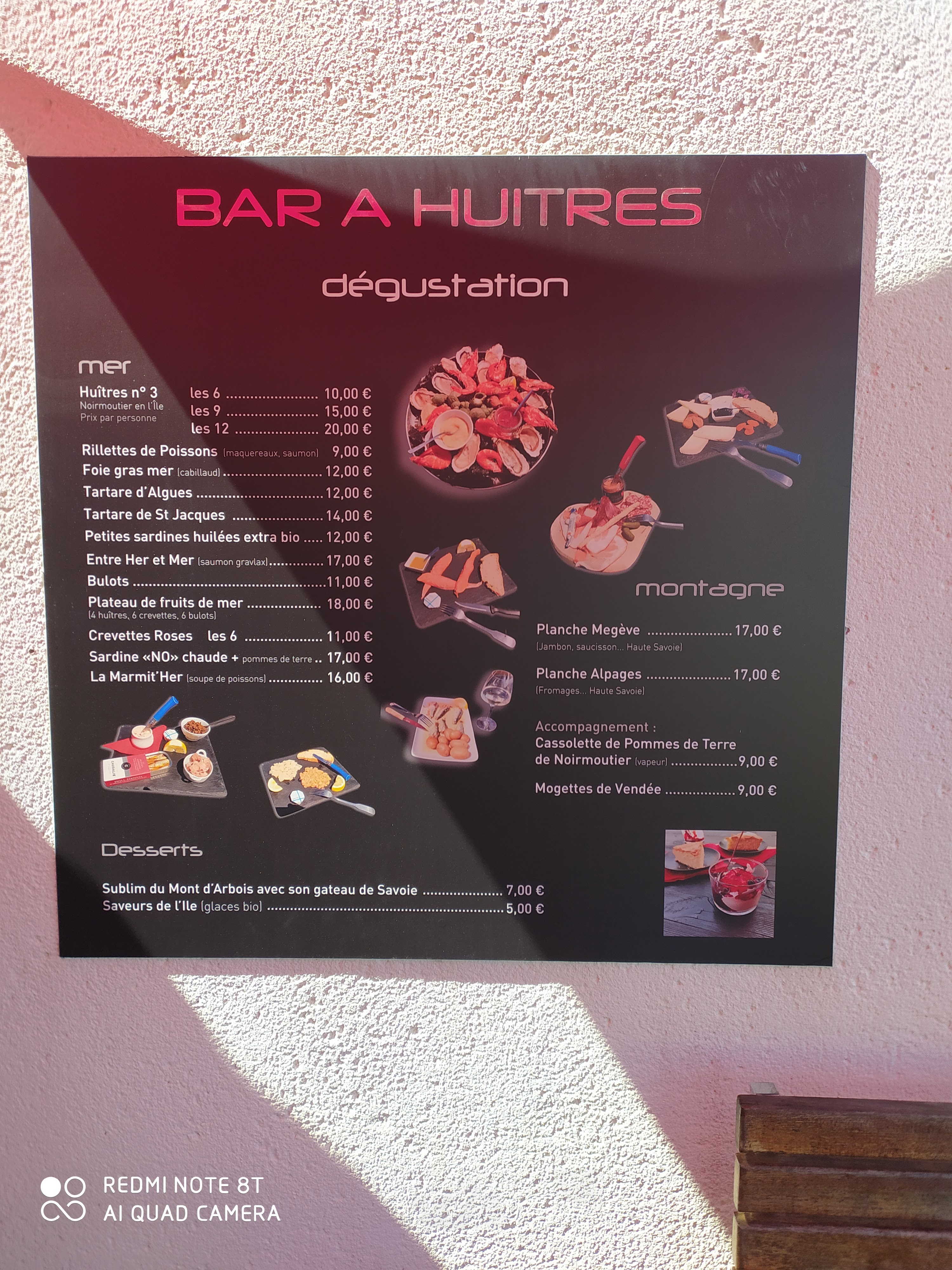 Un moment de détente sur le port de l'Herbaudière quand on a du temps devant soi avec des tarifs à la hauteur du lieu. Petite étude de marché faite, paradoxalement les huîtres du bois de la Chaize sont meilleur marché !
