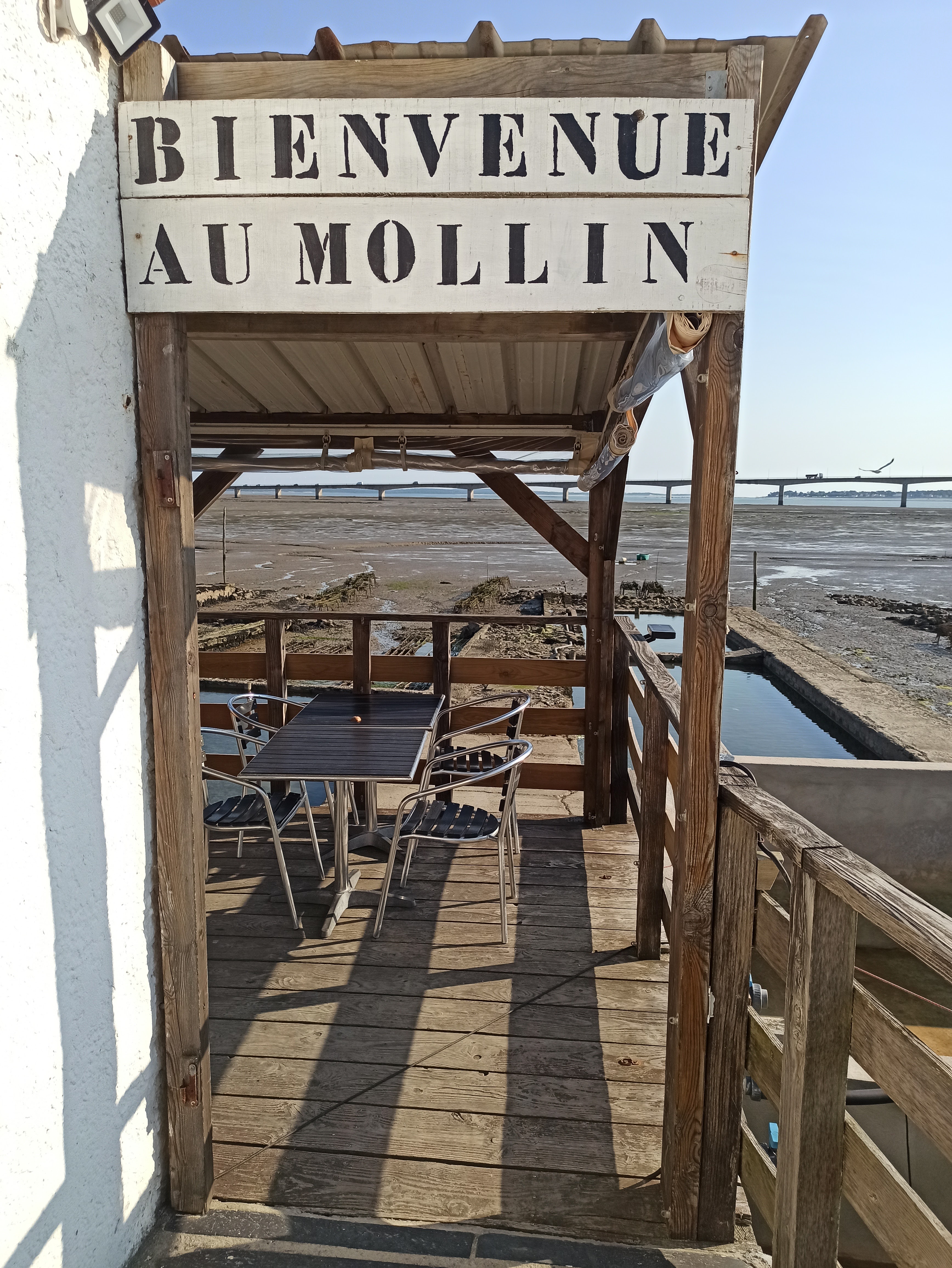 Ambiance formidable au bar à huîtres Le Mollin L'Huître de la Pointe ! Le patron, Renaud, un enfant du pays, sait parfaitement comment créer une atmosphère accueillante et chaleureuse. La vue spectaculaire sur le bassin de Marennes Oléron, en face du pont de l'île d'Oléron, offre des couchers de soleil absolument splendides. Il faut absolument venir pour déguster les huîtres cultivées par Renaud et ne pas manquer la fameuse églade de moules. Un véritable spectacle garanti ! Une expérience inoubliable, je recommande vivement!
