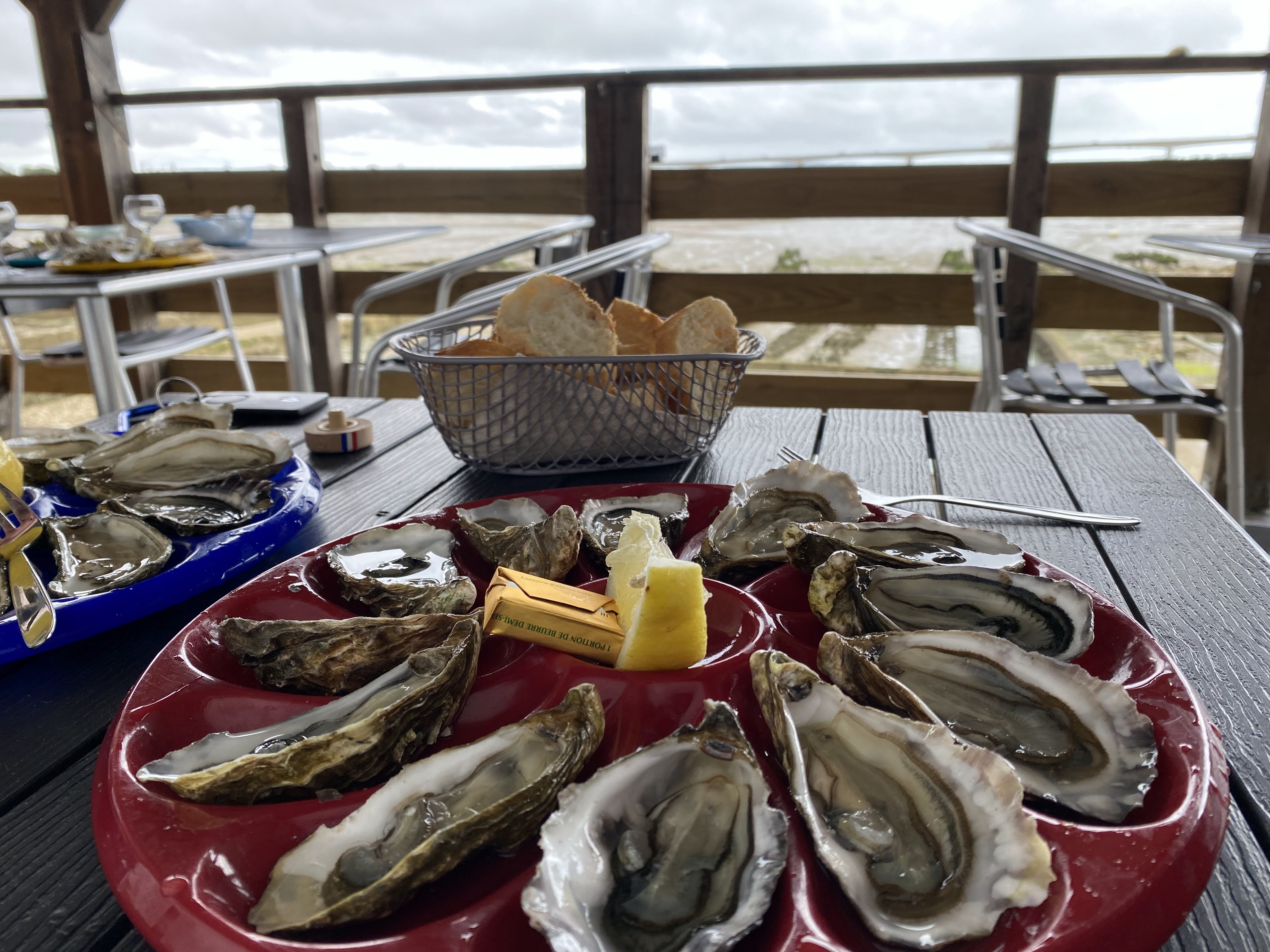 Une terrasse Des huîtres La mer le bonheur Et le patron très sympathique