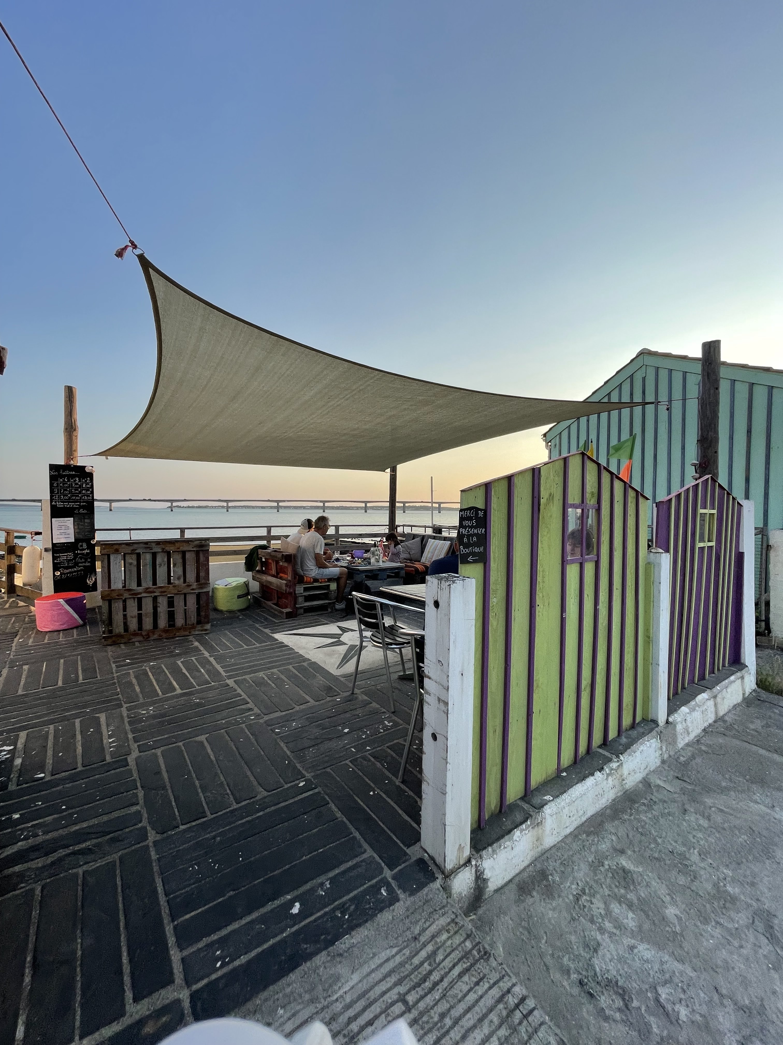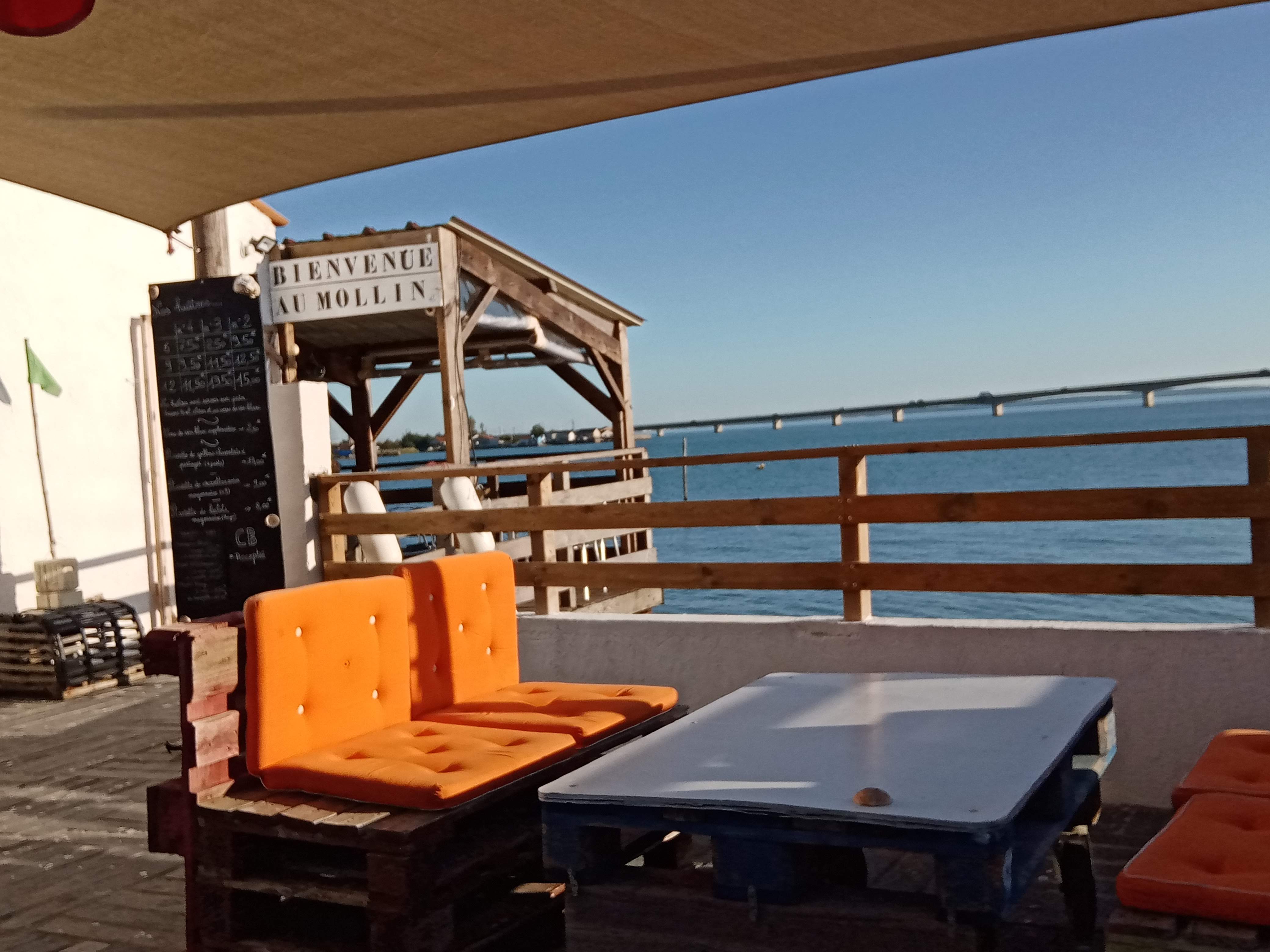cadre simple et magnifique avec vu sur la mer et le pont en direction d'Oléron. Accueil chaleureux serviable, nous avons découvert l'éclade de moules aux épines de pin un pure régale des yeux et des papilles (réserver à l'avance). Des entrées simple et délicieuse et enfin des boissons locales rafraichissante et d'une légèreté sans nom. Vraiment je recommande cet endroit