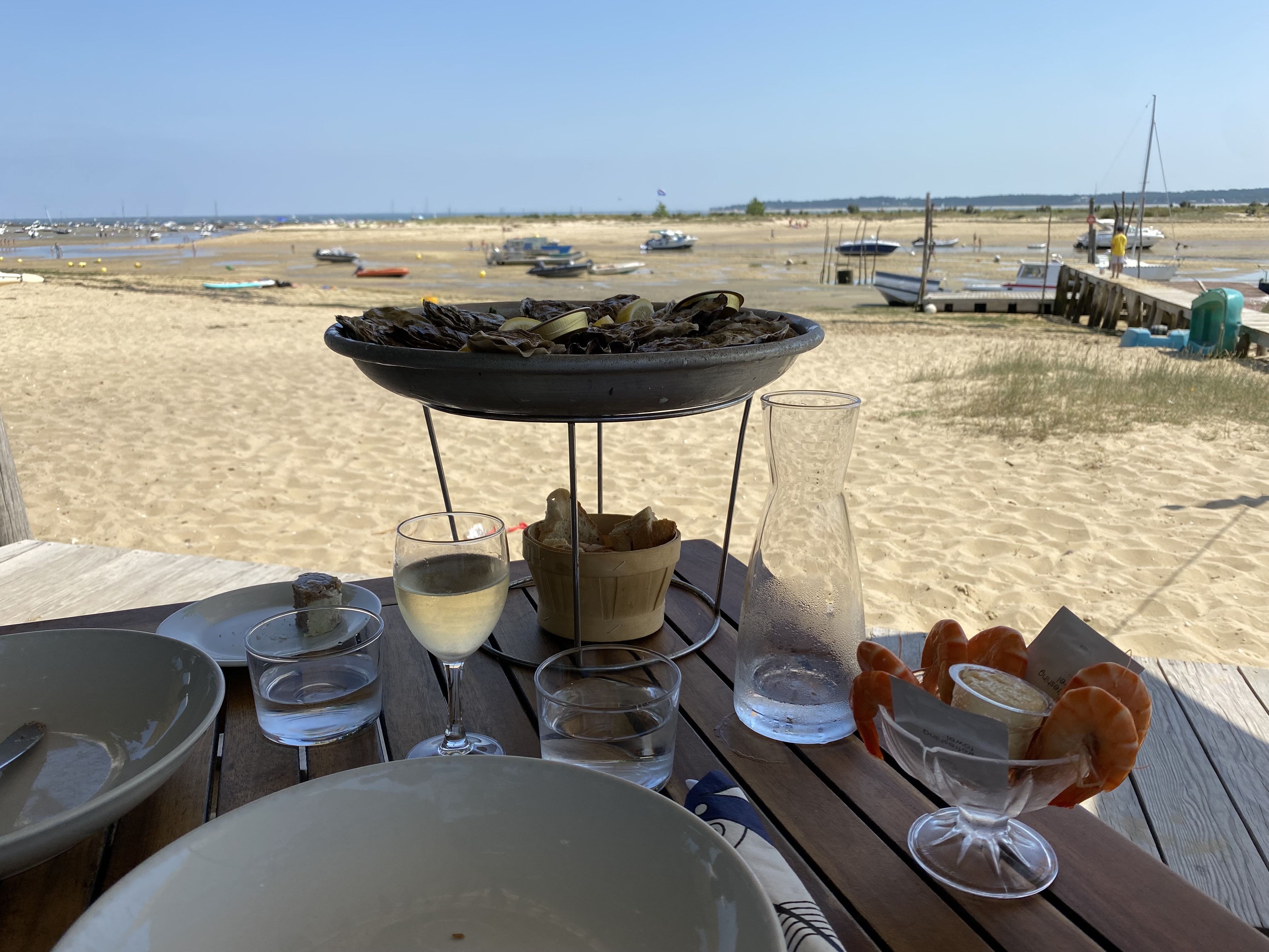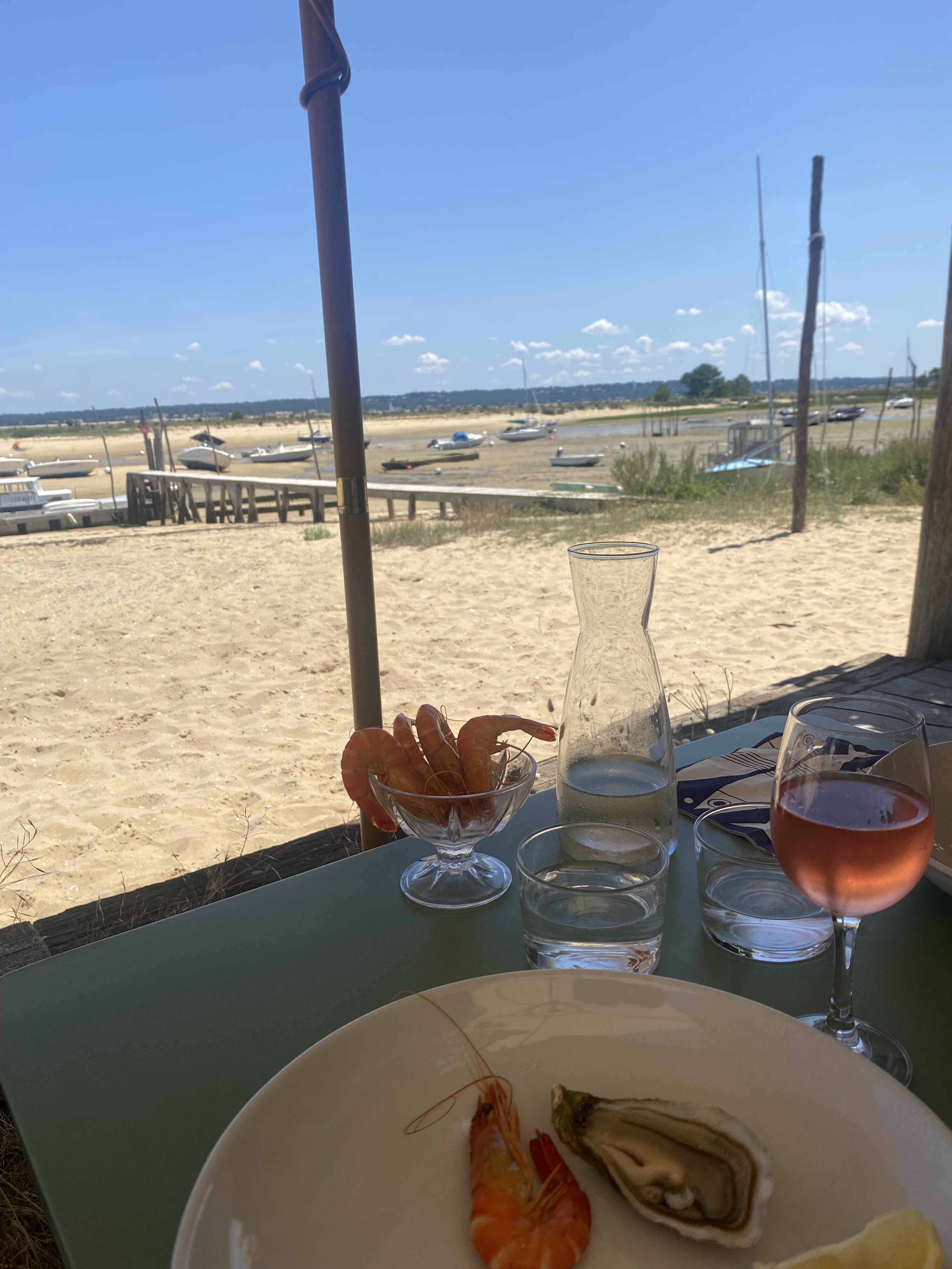 Posté le 15/08/2024 à 10:56"Dégustation d'huîtres, crevettes et pâté de la met avec un entre deux mers. Vue époustouflante sur le parc à huîtres."