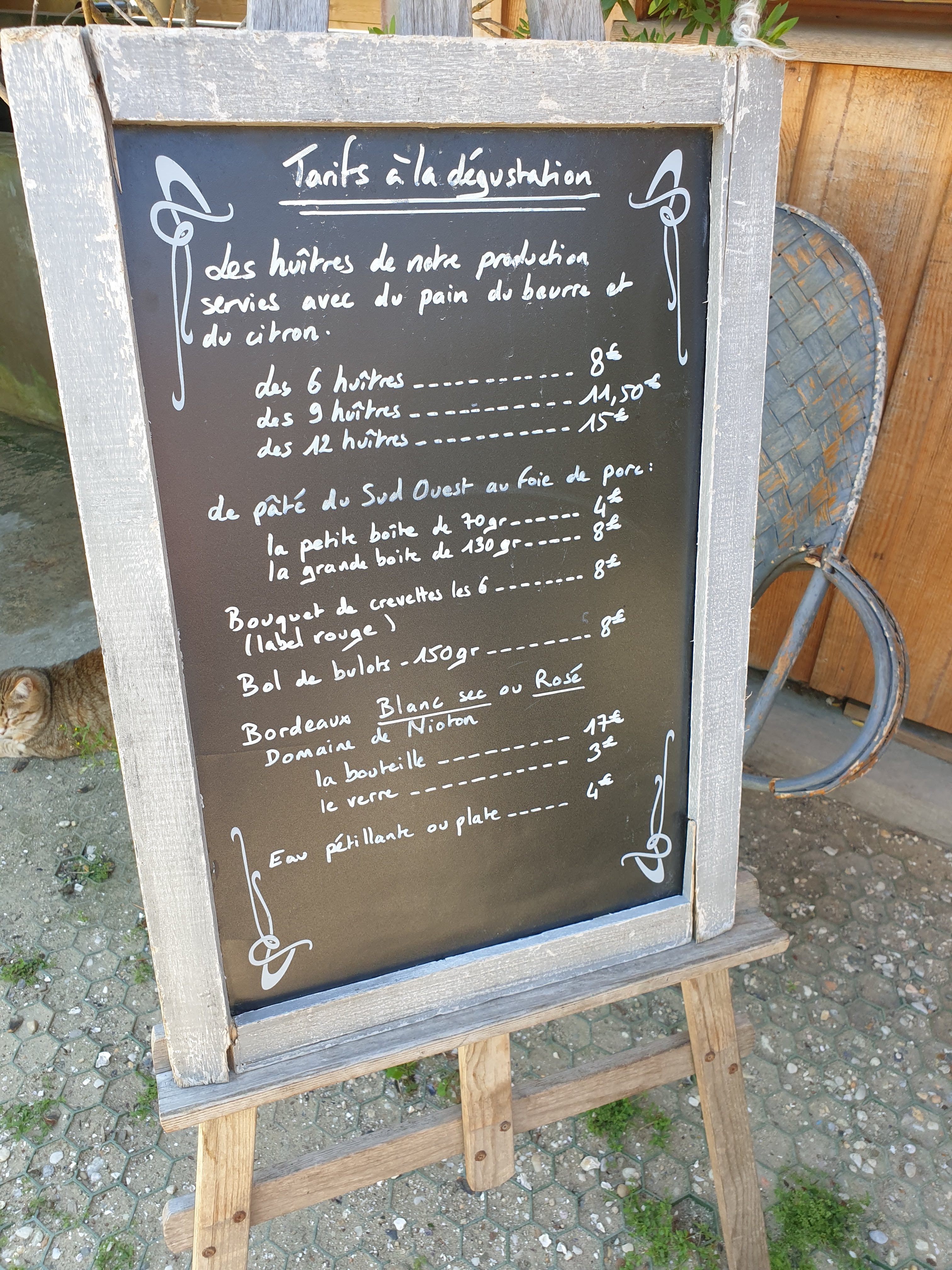 Posté le 23/10/2020 à 12:00"Excellent accueil, petite table a même le sable avec une vue magnifique. 2 sortes d huître du Ferret différentes à comparer, selon l endroit de leur élevage. Très bonnes 😊 Promenade sur le Mimbeau en suivant : impeccable. 50€ pour 18 huîtres, 2 bols de crevettes et une bouteille de blanc."
