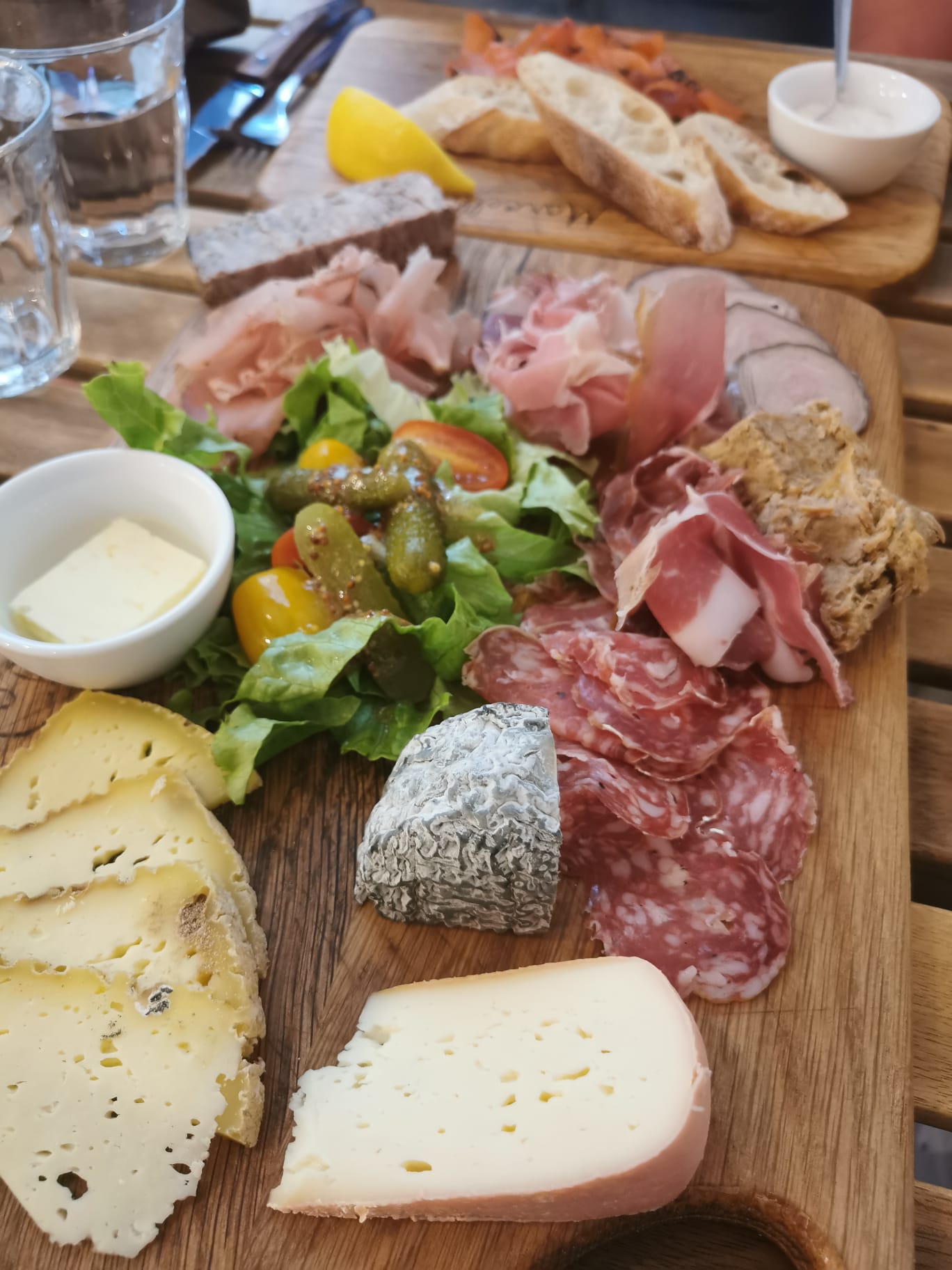 Super moment détente déjeuner en extérieur ,rue longeant la cathédrale, très calme.trio de poissons et mixte charcuterie fromages avec toasts et petites crèmes et merci pour la recette de la terrine de saumon en entrée