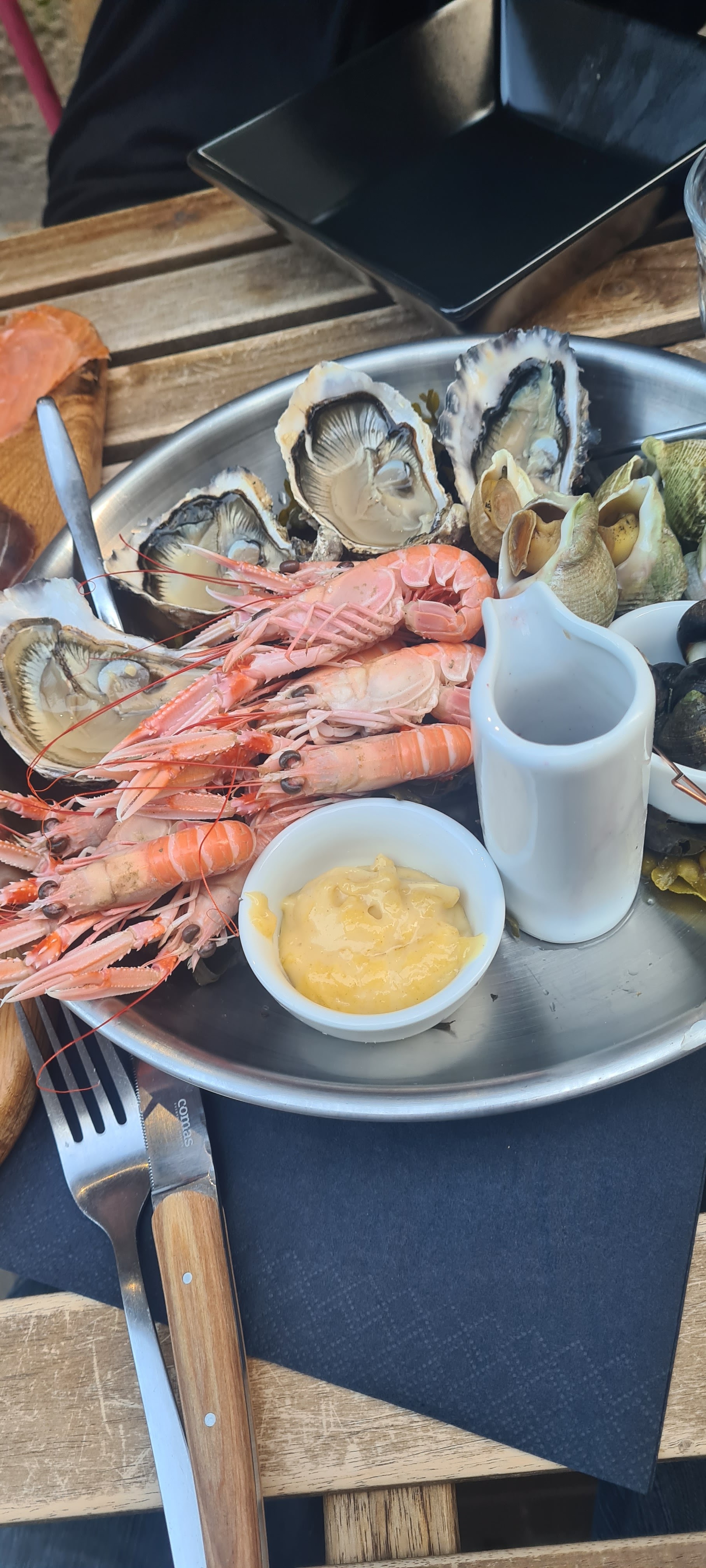 Huitres et saumon vraiment délicieux. Terrasse charmante sans compter l'accueil chaleureux. Nous recommandons vivement !