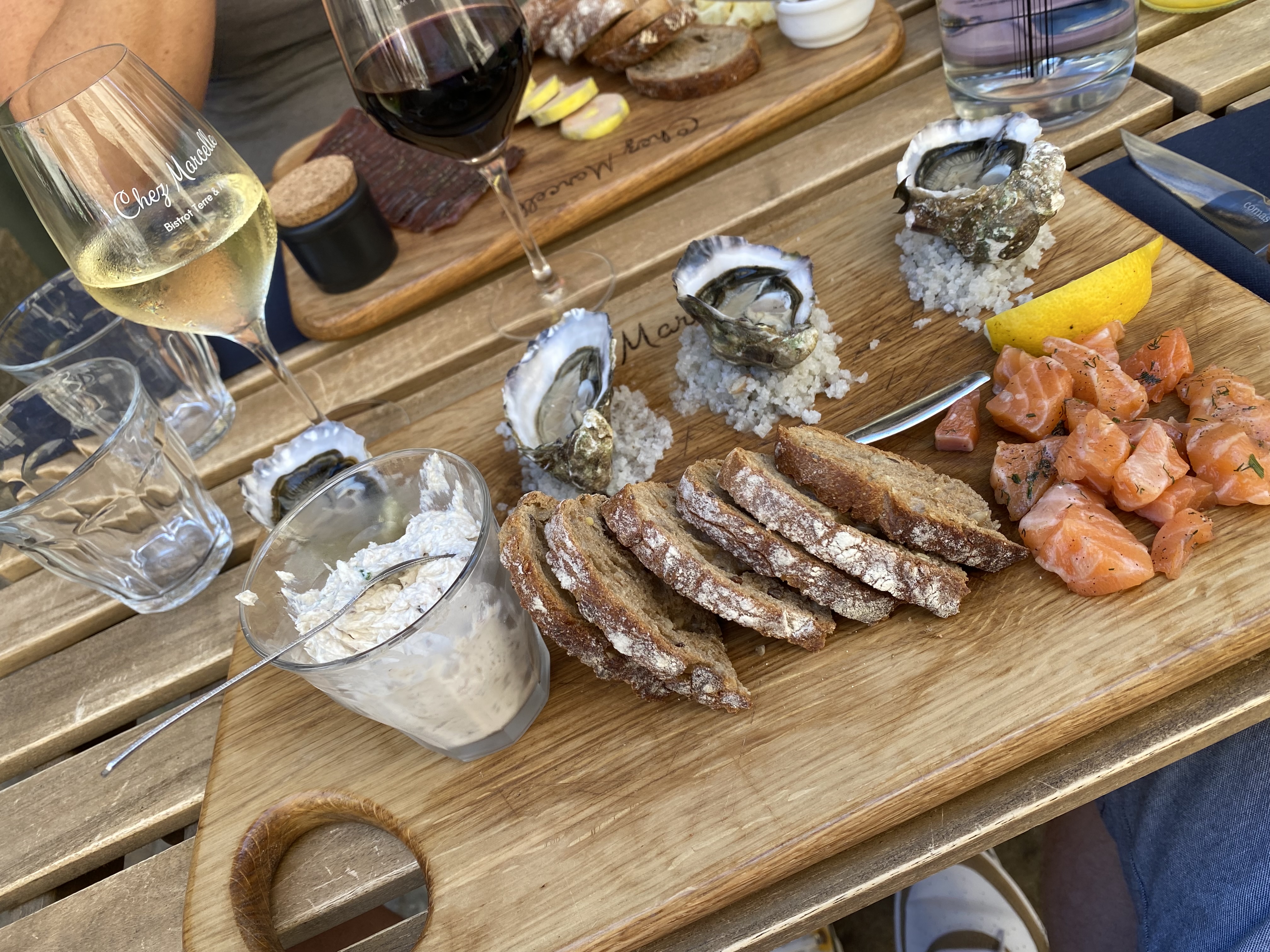 Excellente soirée chez Marcelle ! Nous y sommes passé pour gober quelques huîtres et continuer notre route, nous y sommes restés toute la soirée. Huîtres fraîches, planches généreuses et vins de qualité. Au top.