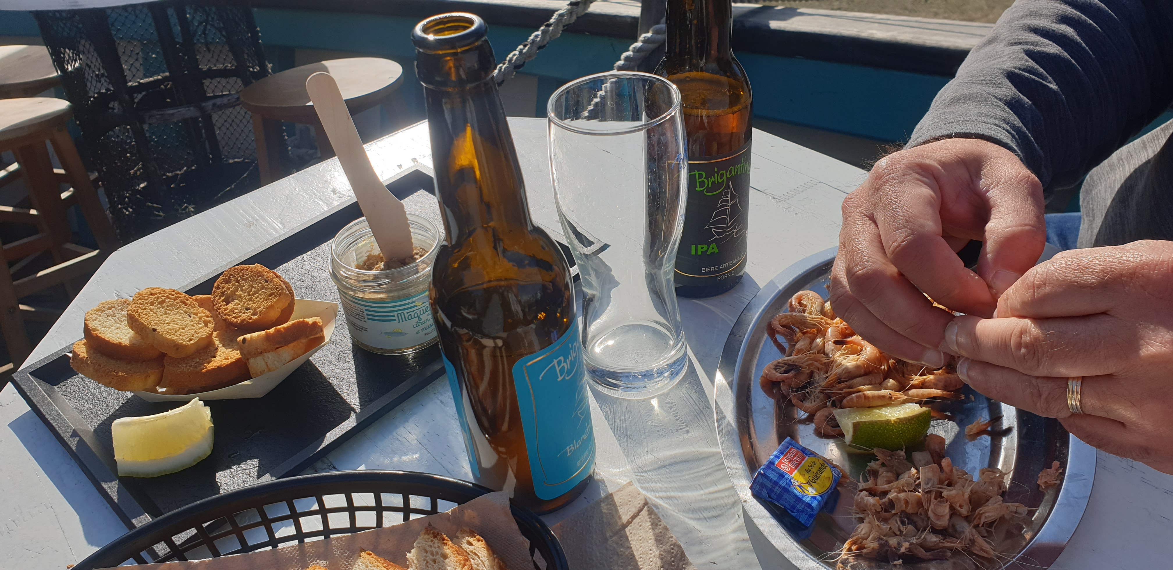 Merci ! La bière est à 5,10€ en 33cl il y aura des pressions également pour juillet/août sur la terrasse avec d'autres produits a venir découvrir ! Les crevettes sont à 4,50€ 😉 à bientôt à bord !