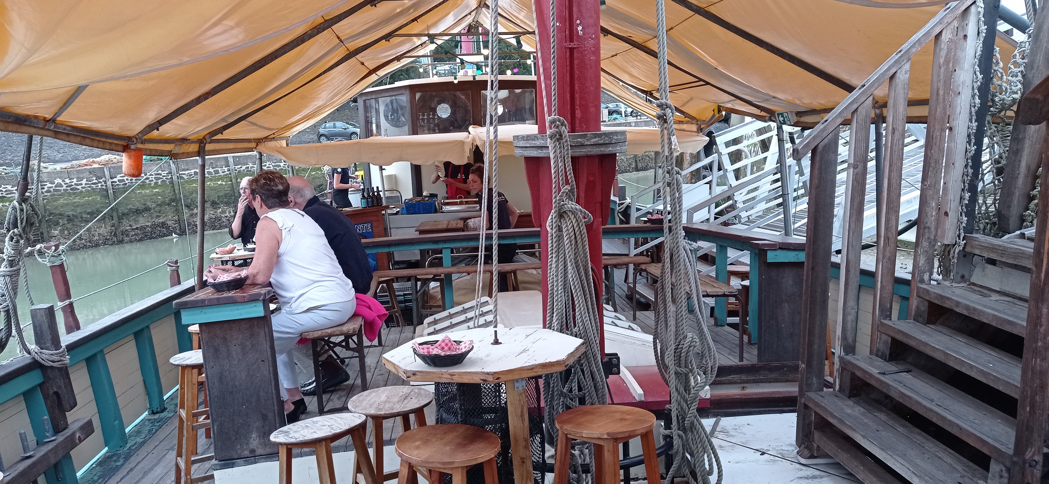 Expérience unique : boire une bière locale assis sur le pont d'un vieux bateau en plein Pornic ... vaut le détour