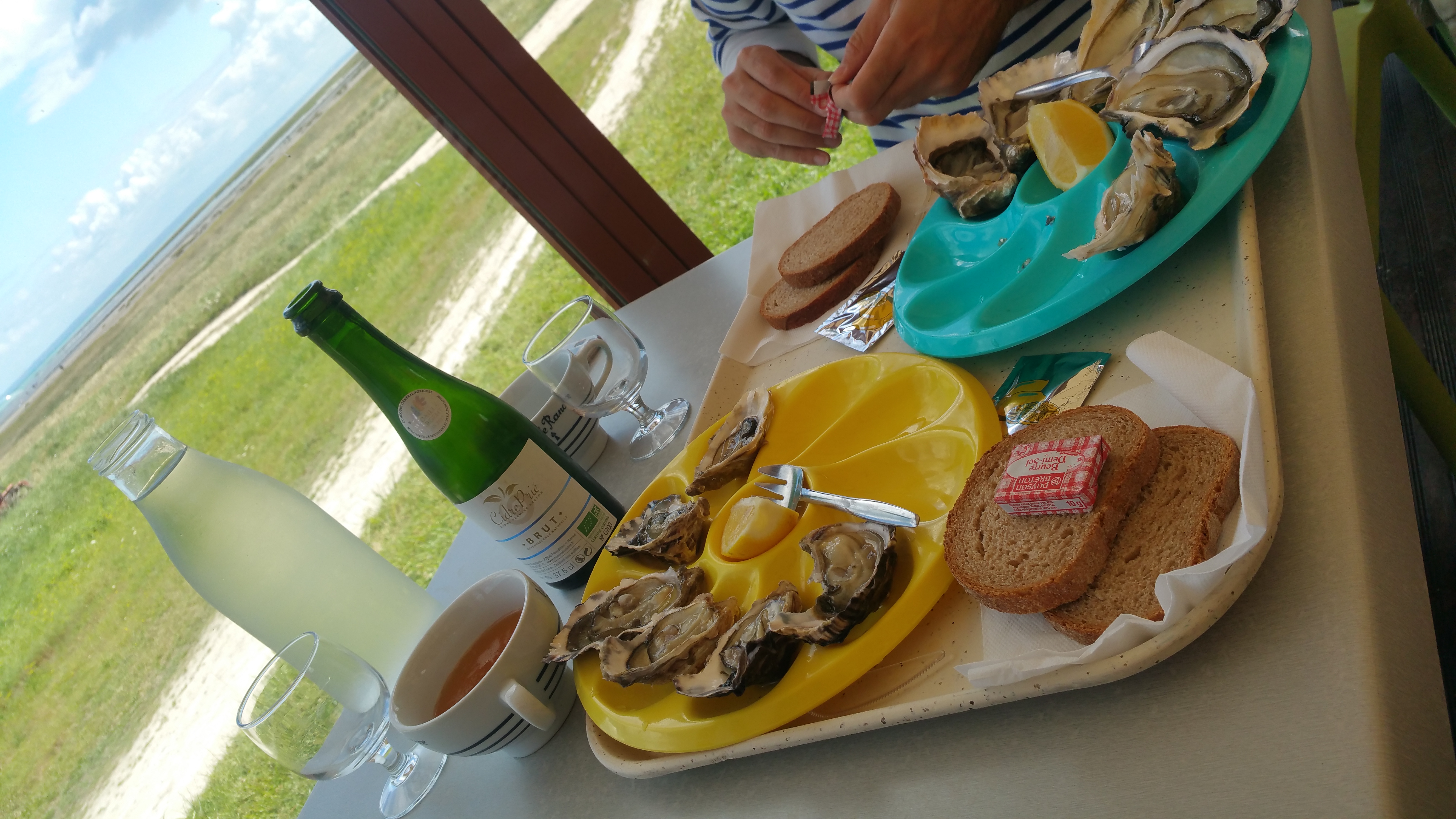 Bon plateau d huîtres pain beurre et muscadet face au Mont St Michel le rêve