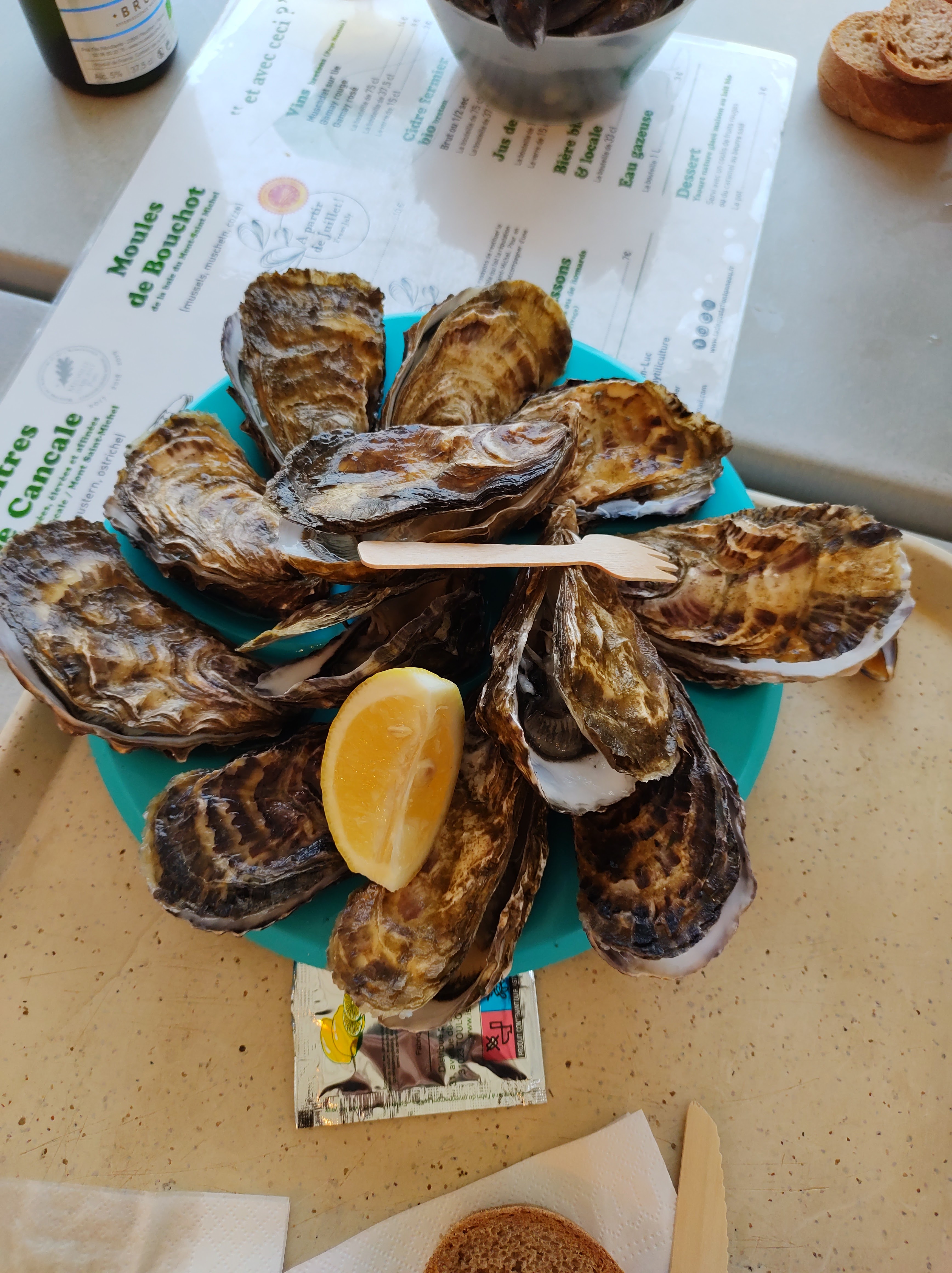 Petite halte en bord de la baie du Mont St Michel. La vue est splendide, les huitres sont délicieuses et le personnel accueillant.