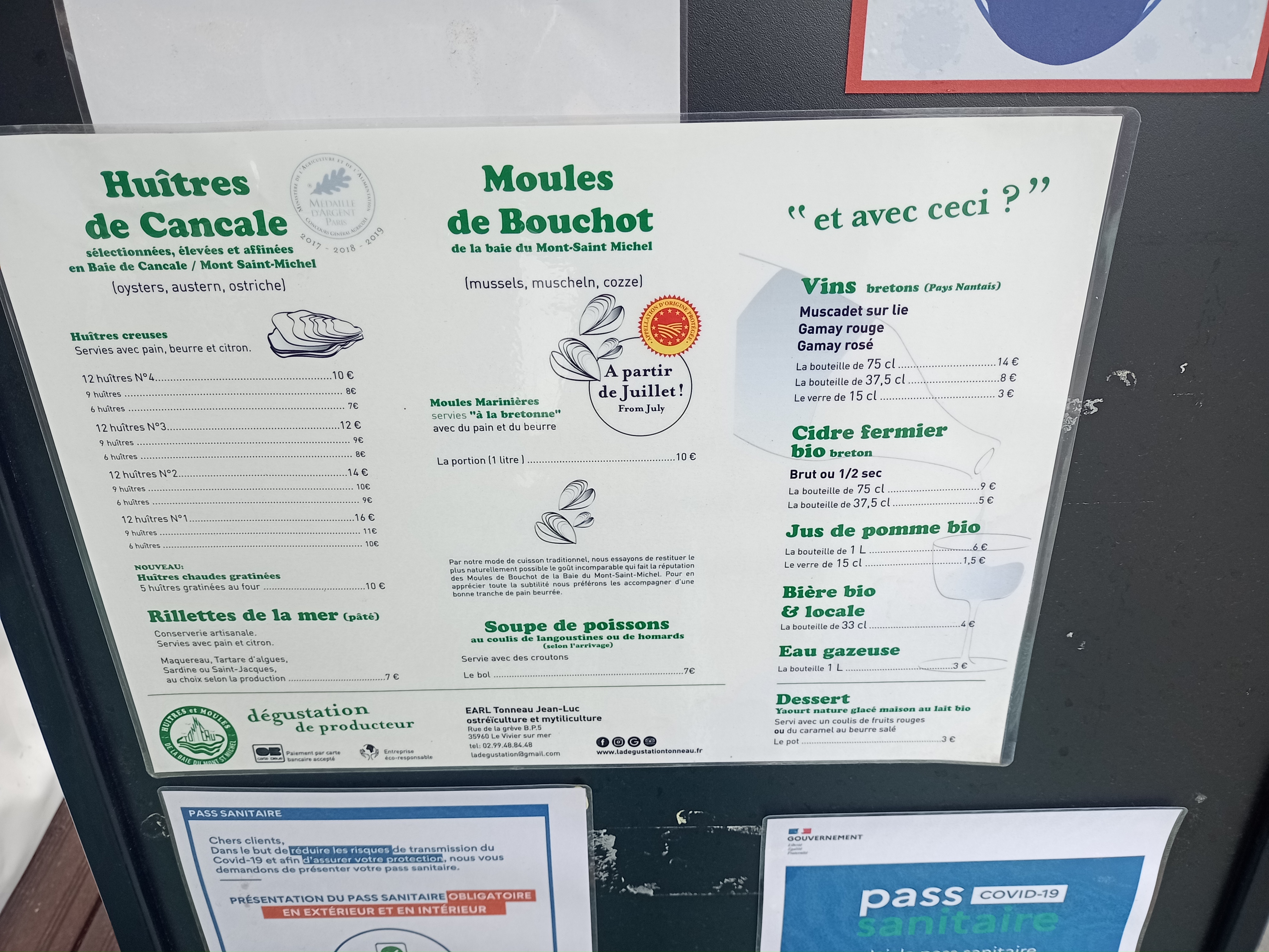 Nous avons passé une superbe journée. Vue sur la baie du mont Saint michel. Huîtres ultra fraîches. Petit verre de vin blanc. Rillettes de Saint Jacques.. Un régal.. Nous recommandons