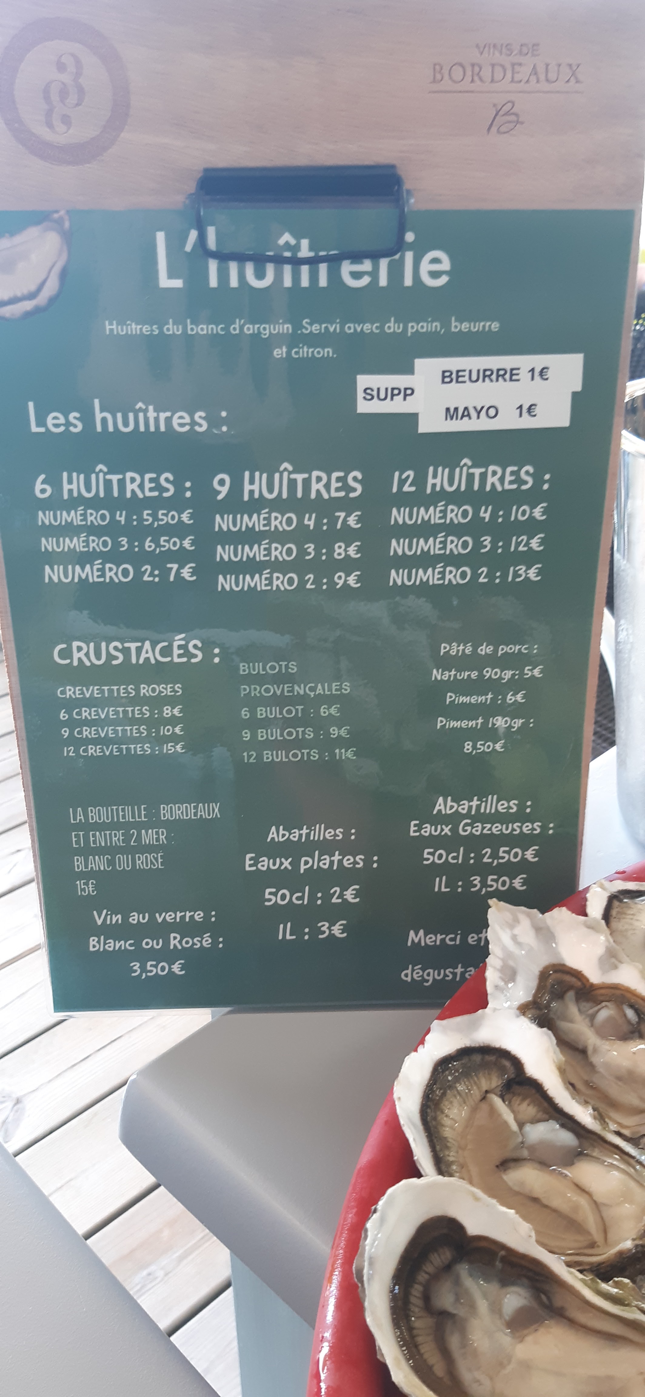 C était ma première huîtres de ma vie est la responsable m'as aidé à déguster, je peu vous dire aussi le cadre est très cool avec un accès sur une petite plage sur le bassin... Merci encore pour votre accueil.