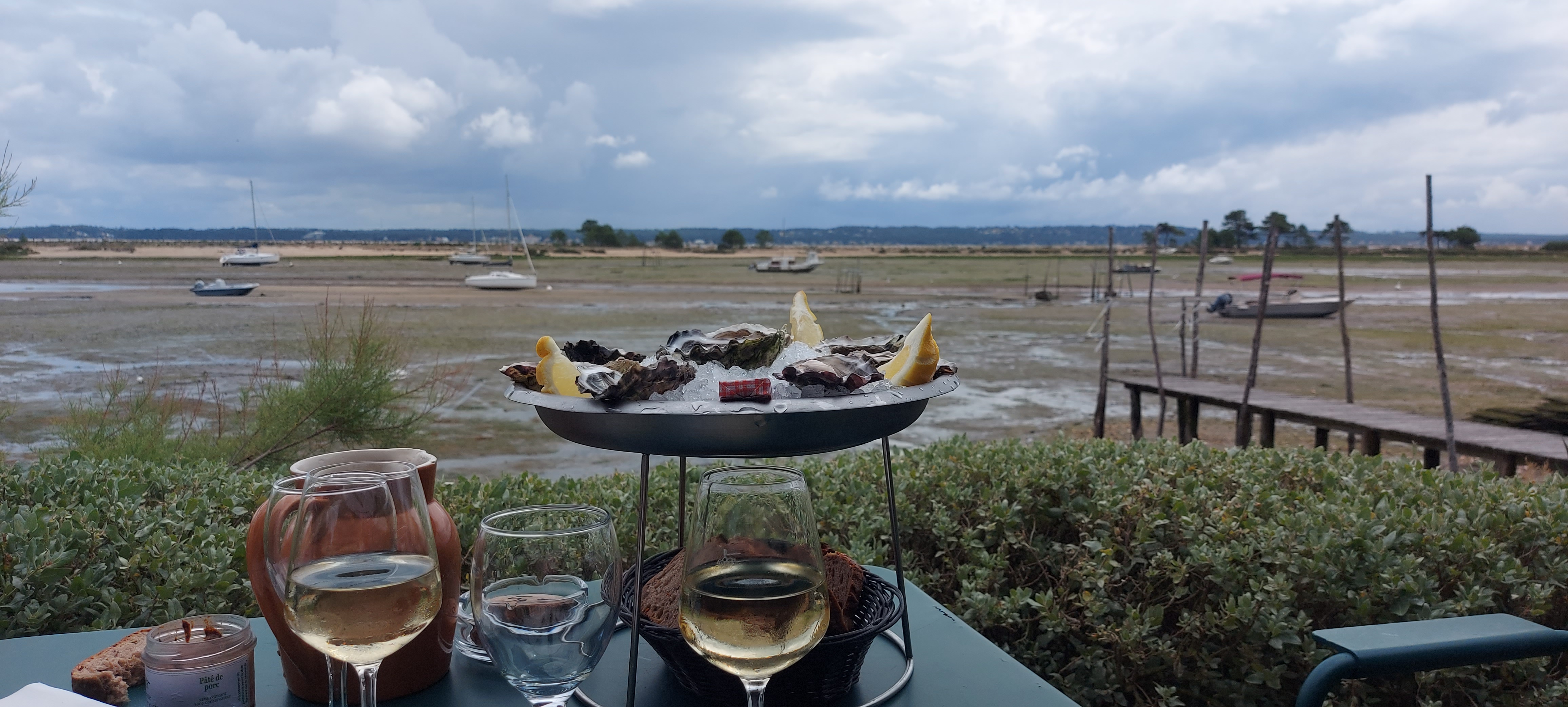 Personnel sympathique, dégustation d'huîtres sous un figuier, vin blanc qui se marie parfaitement avec les huîtres. Vue sur la dune du Pilat. Idéal en amoureux.