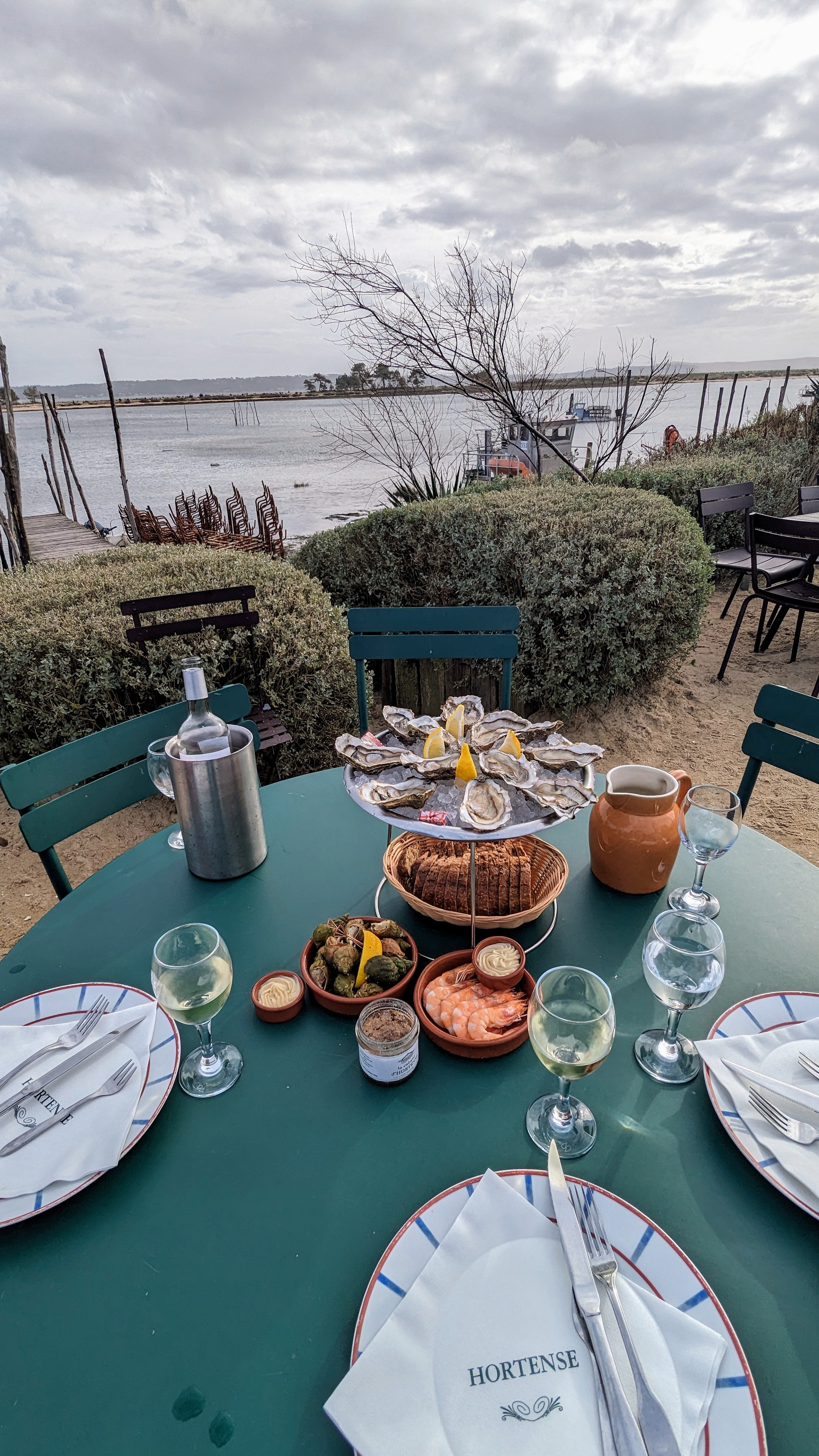 Comme toute première visite, nous souhaitions découvrir les incontournables du Cap Ferret et l’institution Chez Hortense fut largement à la hauteur de sa réputation. Une équipe décontractée, des huîtres délicieuses et un cadre apaisant avec cette terrasse sous les vignes. Merci pour cette pause 💛