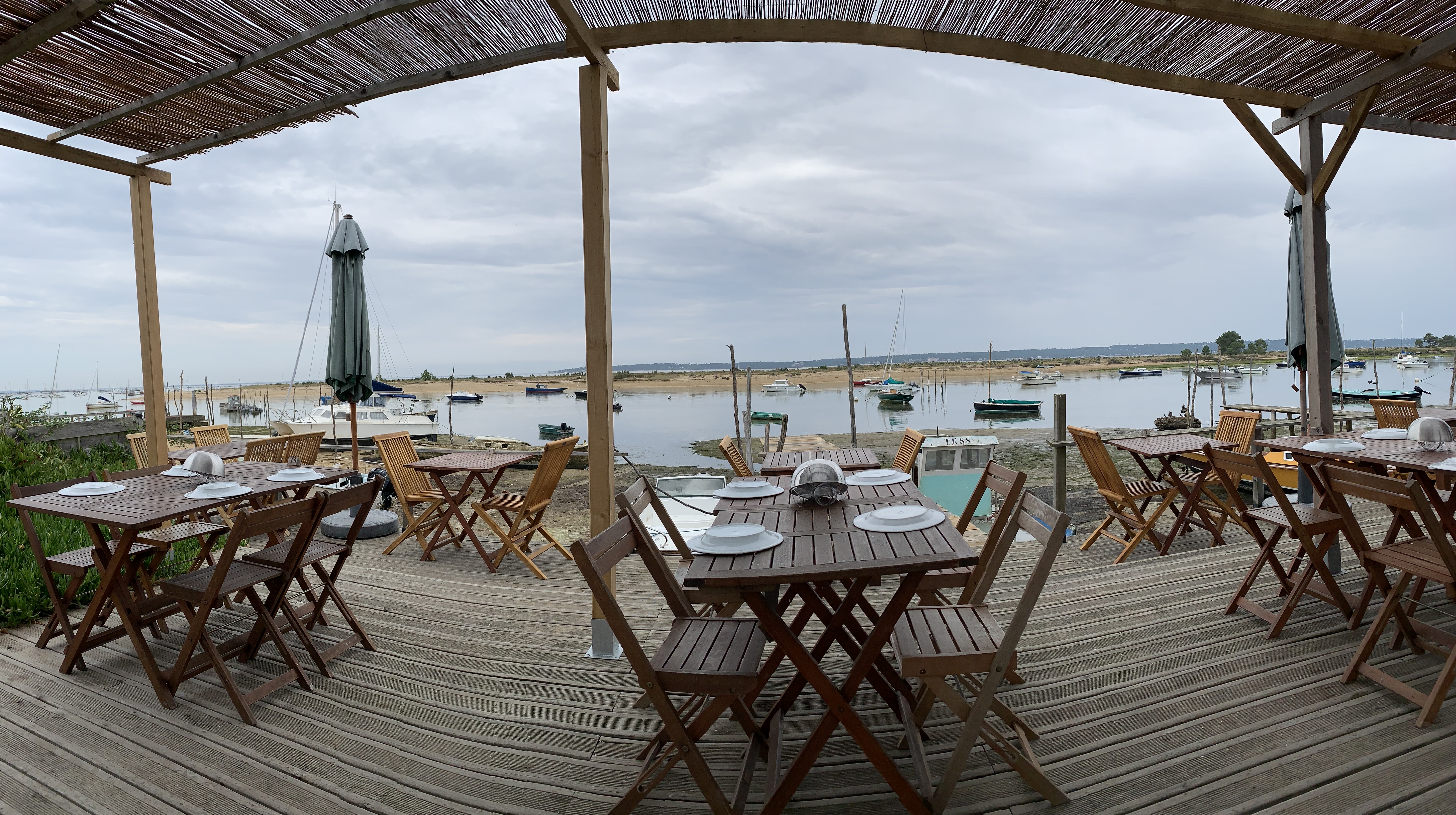 C'est simple, terrasse réduite sur le bassin pour déguster des huîtres. Pas de bling mais encore mieux, un endroit préservé du béton ! Vous paierez pour la tranquillité et la qualité.