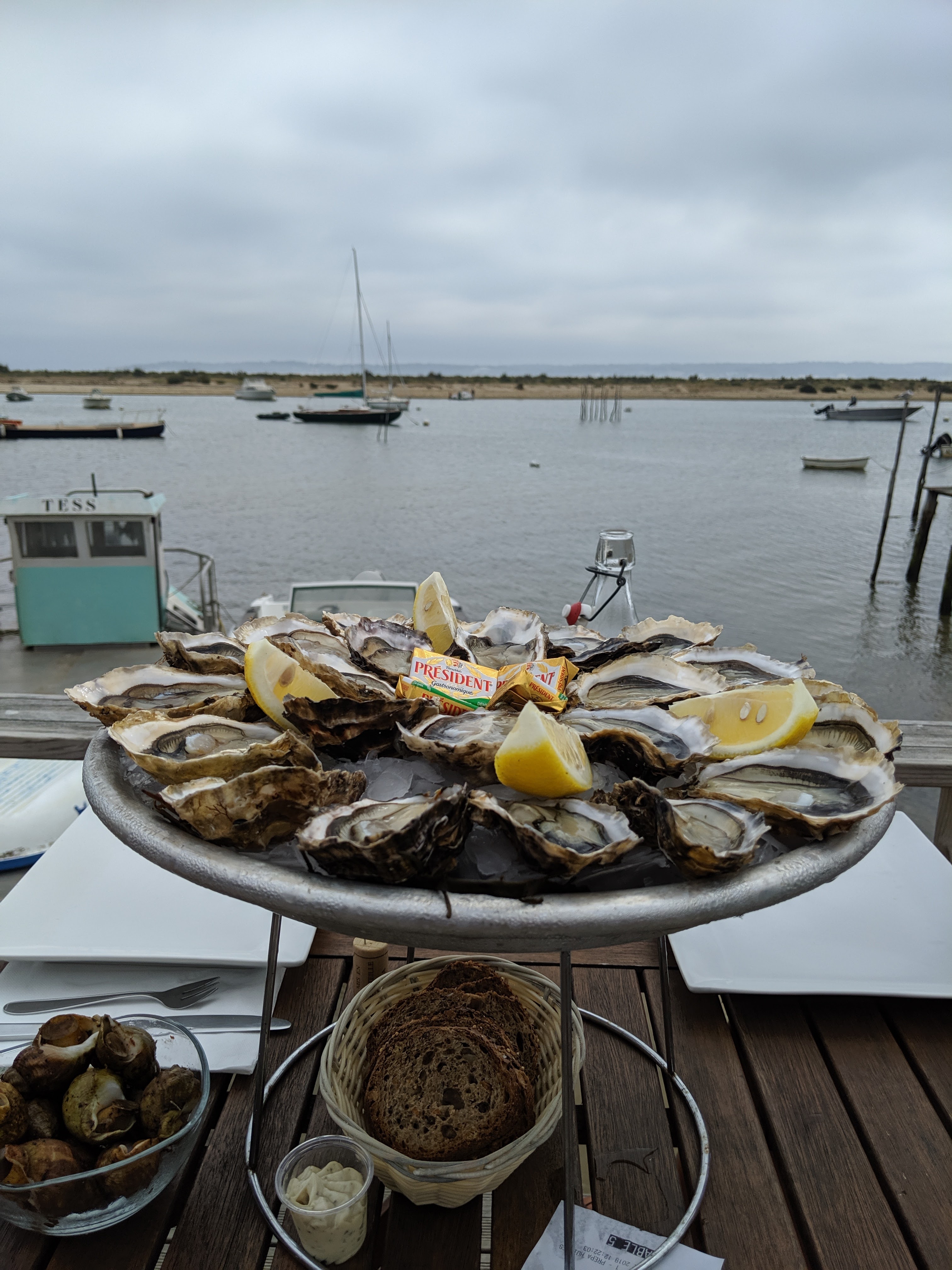 C'est devenu notre cantine pendant notre weekend prolongé à Lège Cap Ferret ! Simplicité est le maître mot de ce lieu ; sans chichi les pieds dans l'eau, produits extra frais servis presque bruts, vue sur tout le bassin et la Dune du Pilat. Très bon rapport qualité prix. Je le conseille à tous ceux ceux qui souhaitent fuir le bling bling du centre du Cap Ferret pour plus d'authenticité.