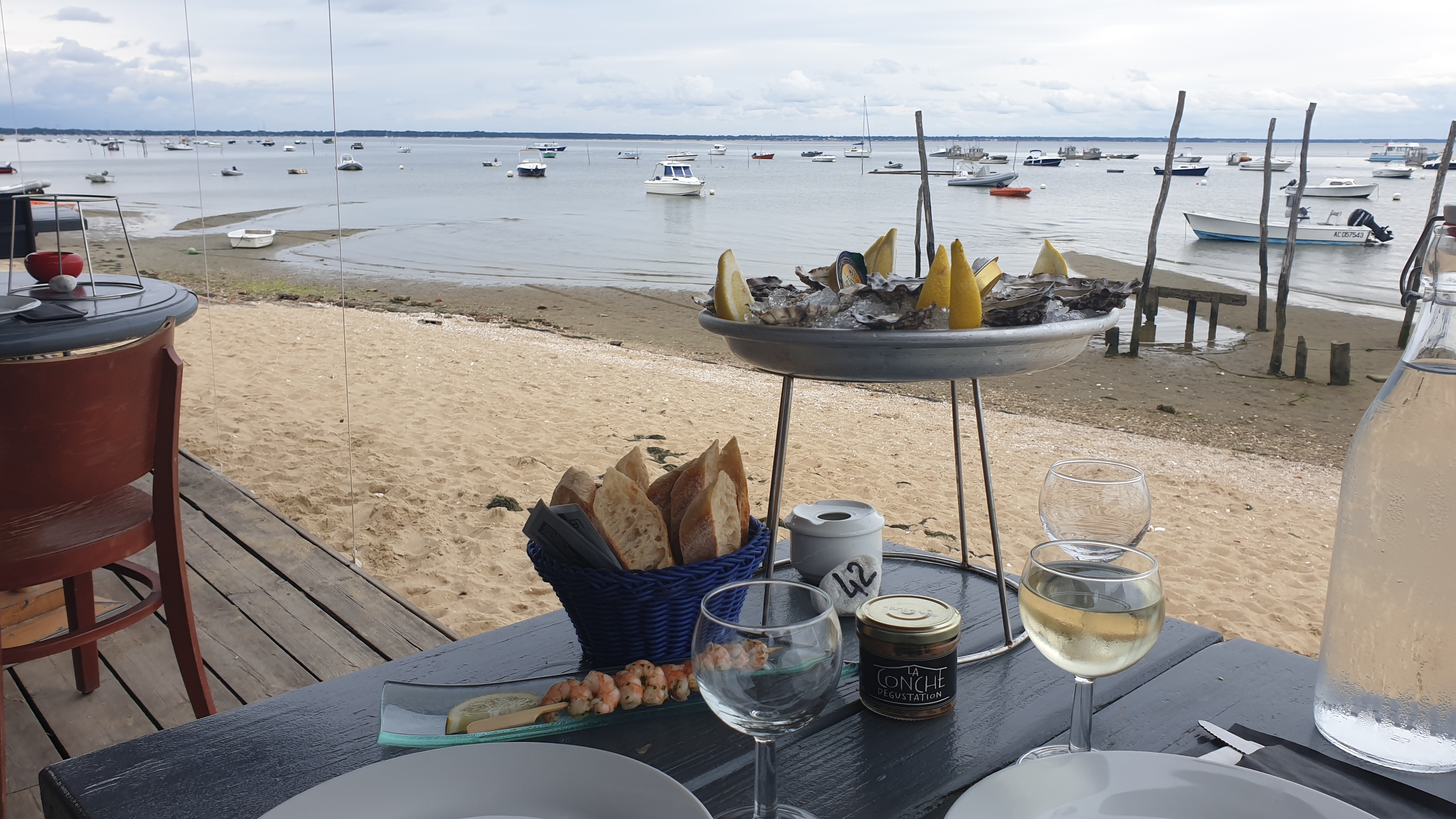Posté le 02/05/2022 à 20:26"Les pieds dans le sable, les yeux sur l eau, une vue imprenable sur le Bassin, des huîtres goûteuses, des crevettes bio, camarones, bulots, bigorneaux... Plaisir gustatif et visuel"