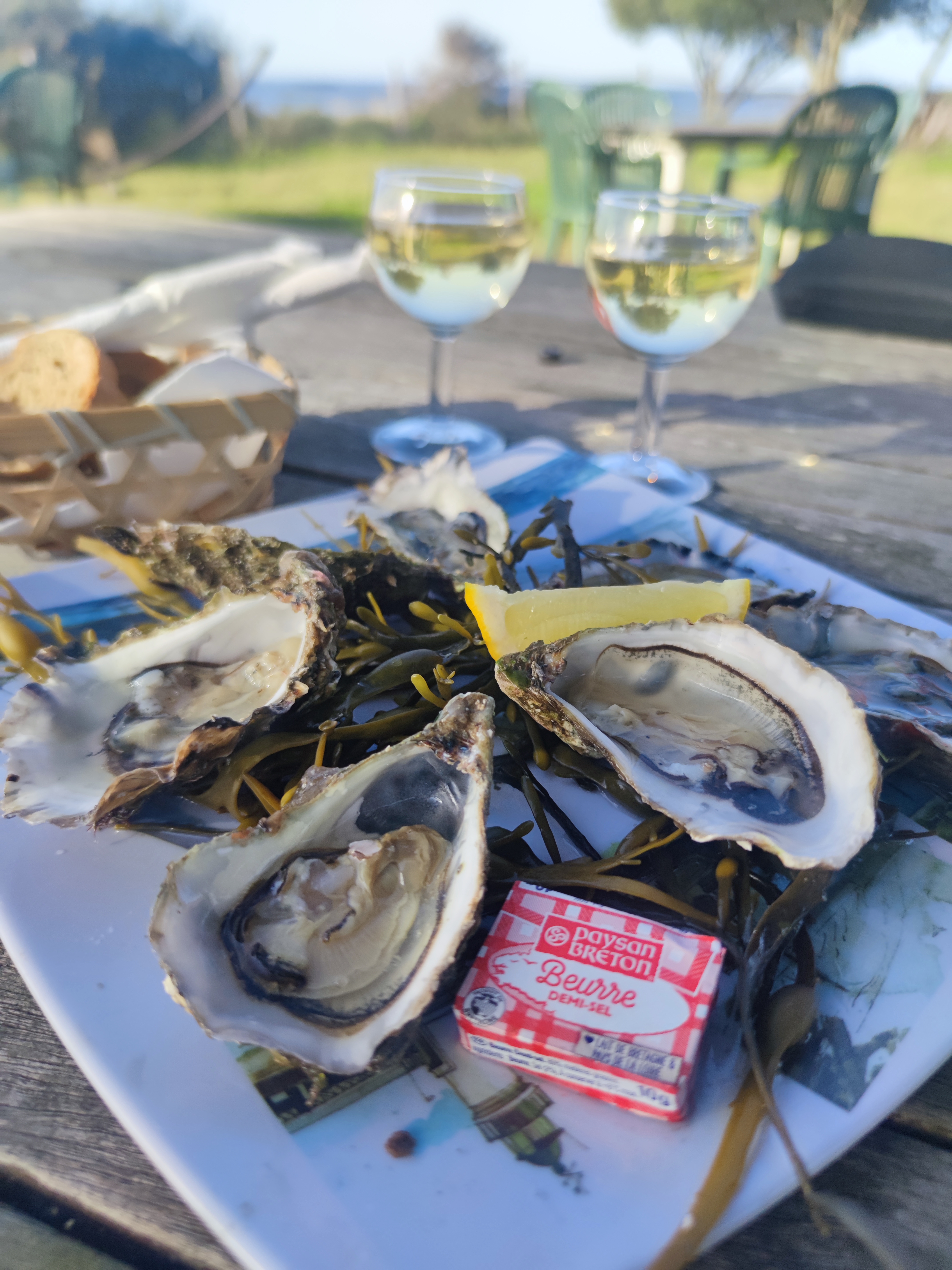 Une étape ressourçante après une randonnée à Sarzeau : déguster des huîtres dans un cadre unique, calme et serein. A découvrir !