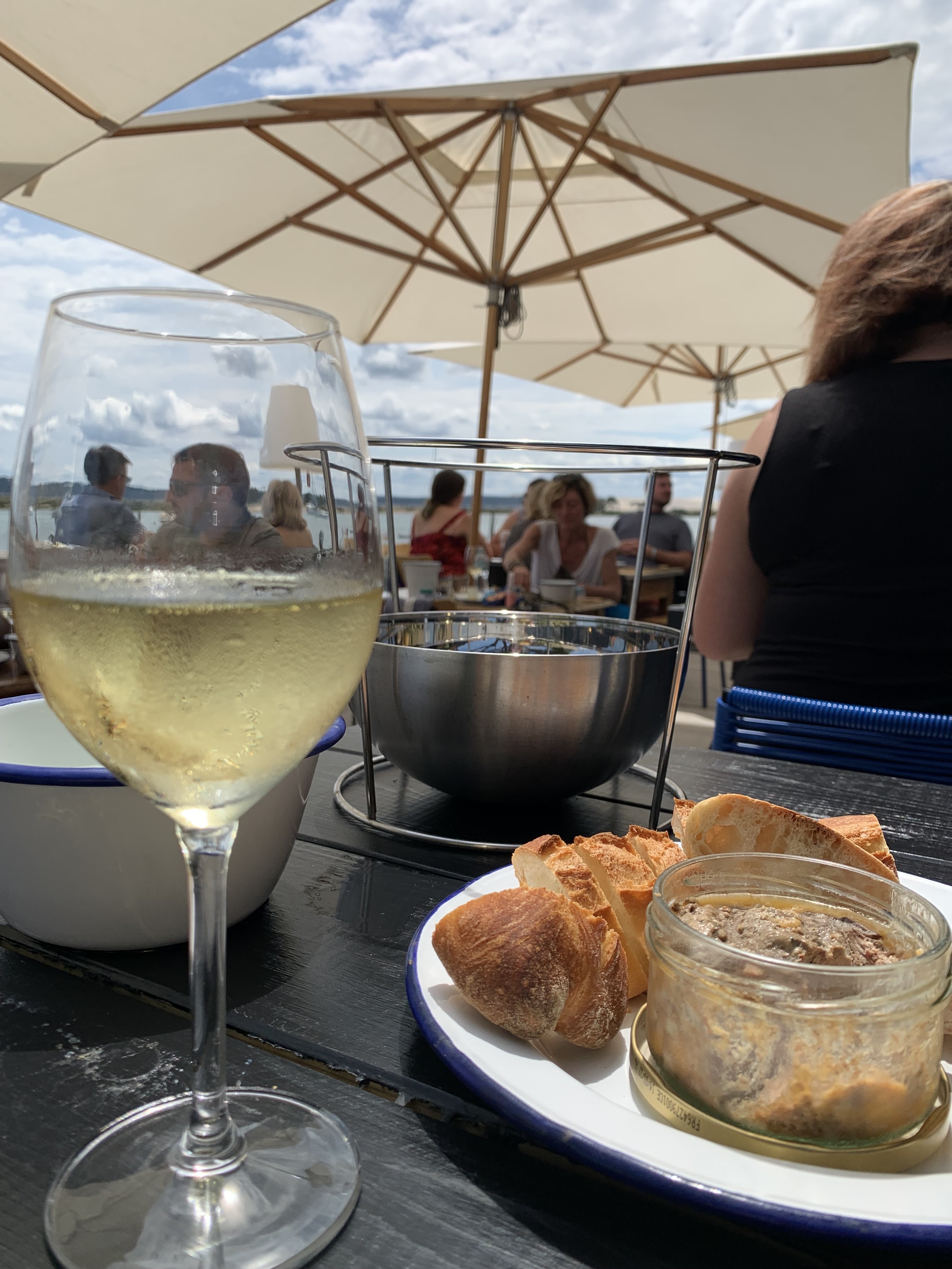 Lors de notre dernier jour de vacances hier En passant devant le Cap Ferret nous avons découvert cette adorable petite cabane (!). Nous avons également été autorisés à nous asseoir avec nos deux chiens. Nous avons aimé les huîtres mieux que partout ailleurs. Cependant, les différences entre les différentes huîtres nous ont été expliquées au préalable. Super! Si vous le souhaitez, vous pouvez également vous procurer une vinaigrette aux échalotes. Les crevettes avec le délicieux aïoli étaient également excellentes. Bien sûr, vous pouvez également profiter de la superbe vue sur la Dune du Pilat depuis les autres cabanes. Peu importe ! C'était parfait ici ! Merci❣️