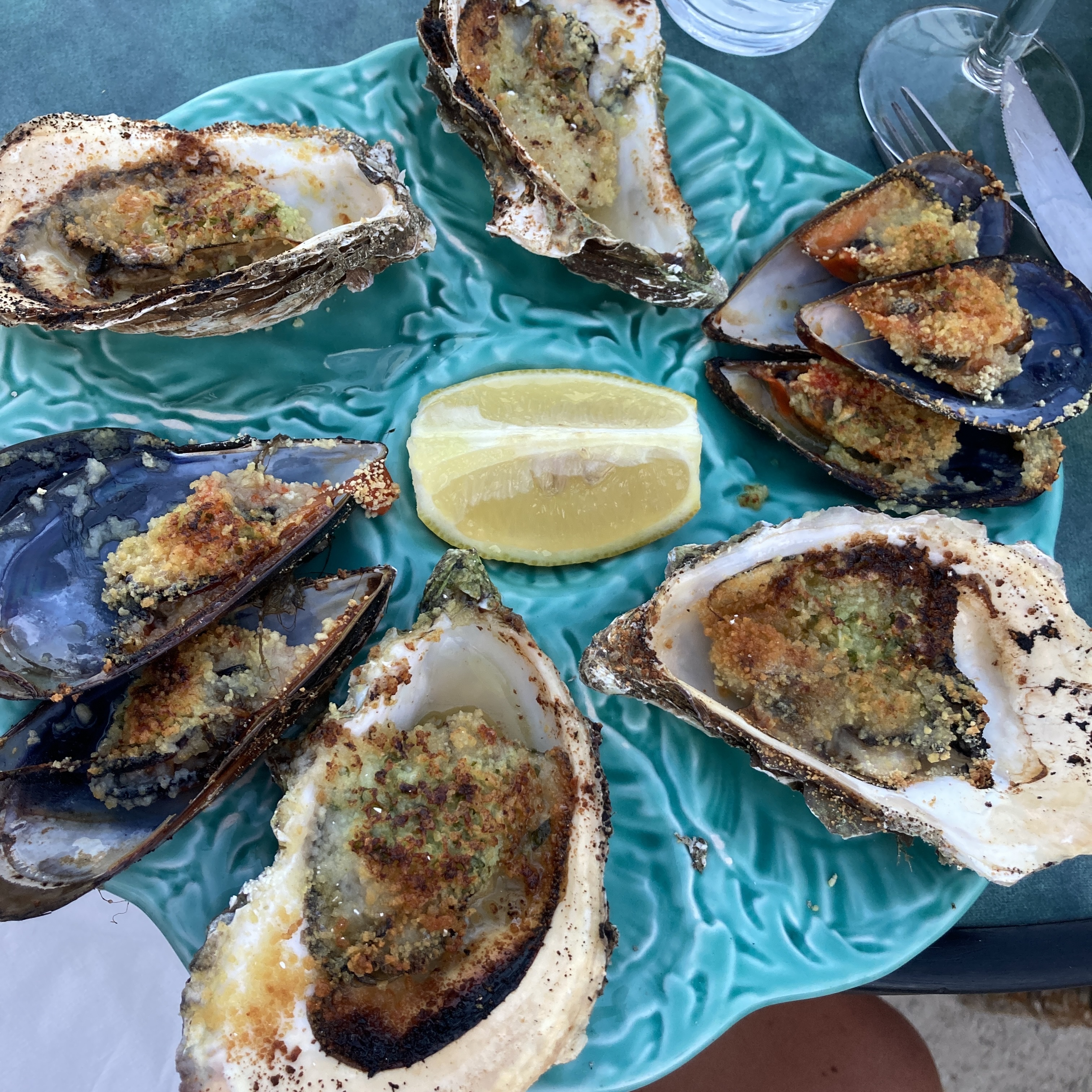 Pour moi ,les meilleures gratinées ,moules et huitres de Thau je conseille aussi le piste de moules et la brasucade de moules au feu de bois ,un délice. un moment hors du temps