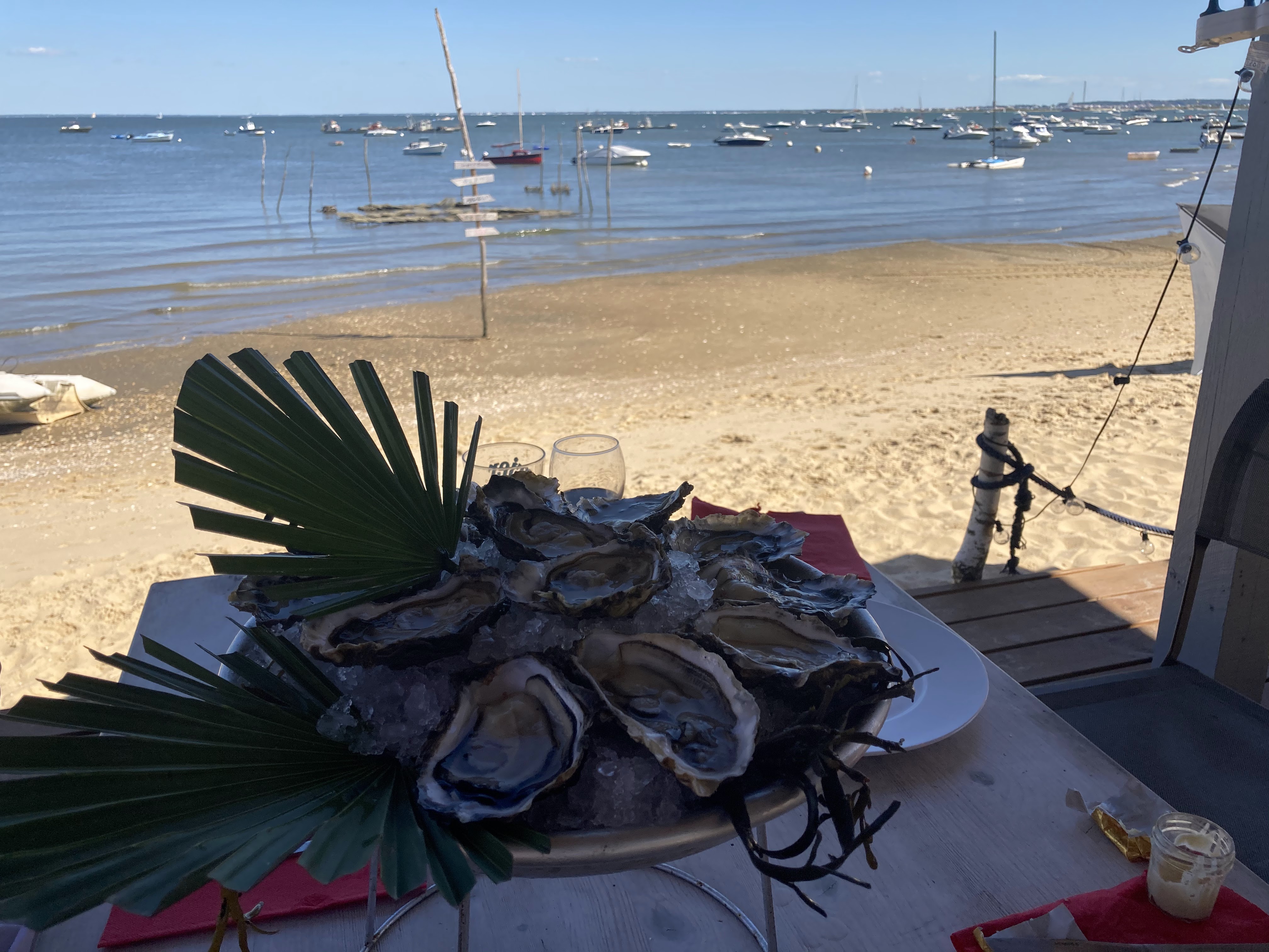 Vue magnifique sur le bassin ! Cadre hyper agréable ! Dégustation de super bonnes huîtres et autres fruits de mer les pieds dans le sable ! Merci à Loris et son équipe pour ce superbe accueil !