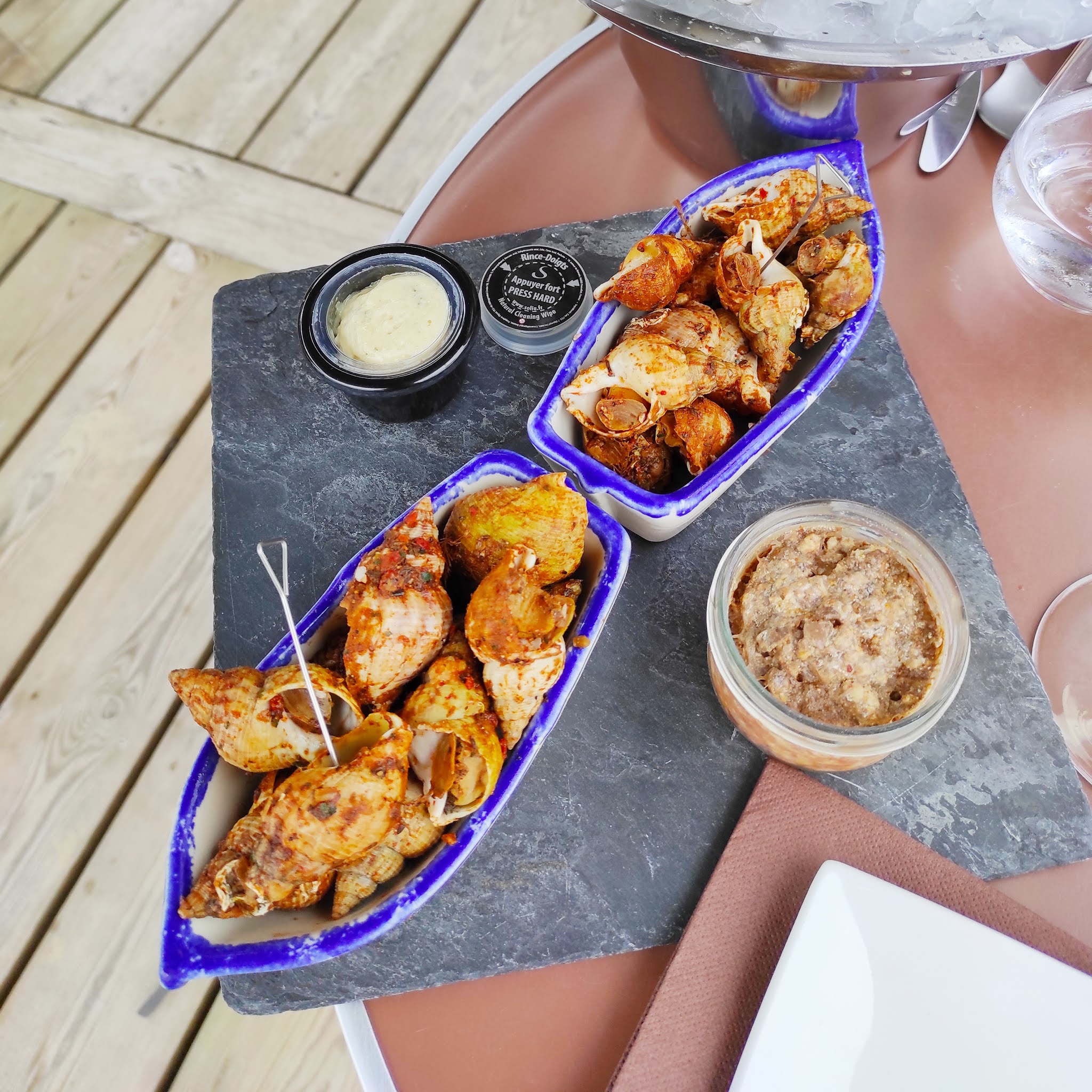 Tout simplement les meilleures huîtres du bassin! Charnues et jamais laiteuses! Crevettes, bulots, pâté, pain frais et beure. Un vin blanc frais, parfait pour accompagner ce moment de plaisir, le tout dans un cadre fantastique. Un grand merci à Karine et son mari, des ostréiculteurs engagés ayant l’amour de leur métier et des bons produits, sans oublier bien sûr toute leur équipe 😉