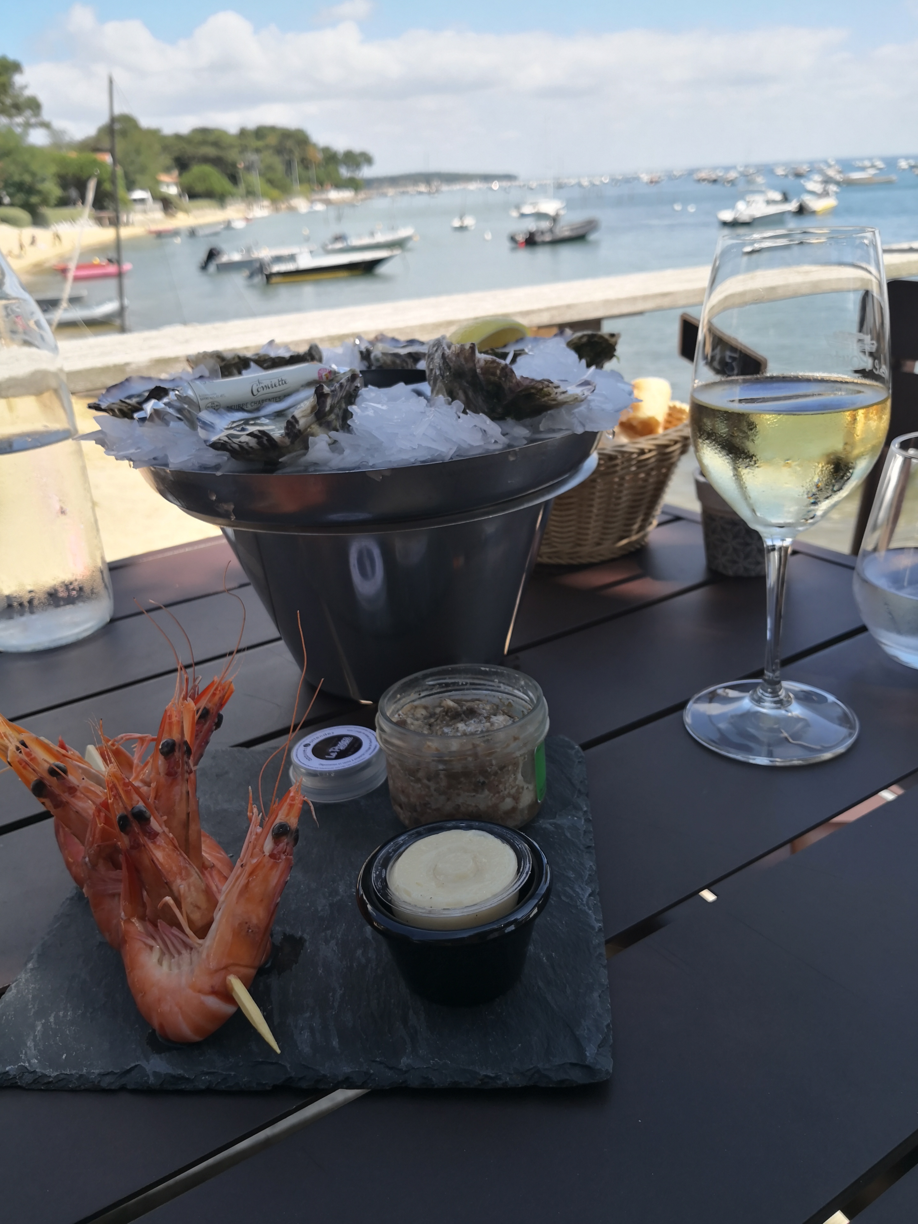 J'ai adoré ce lieu par rapport à la vue S/ le bassin. J'adore les fruits de mer et là, ils sont vraiment très frais et divins et le vin blanc est excellent aussi.