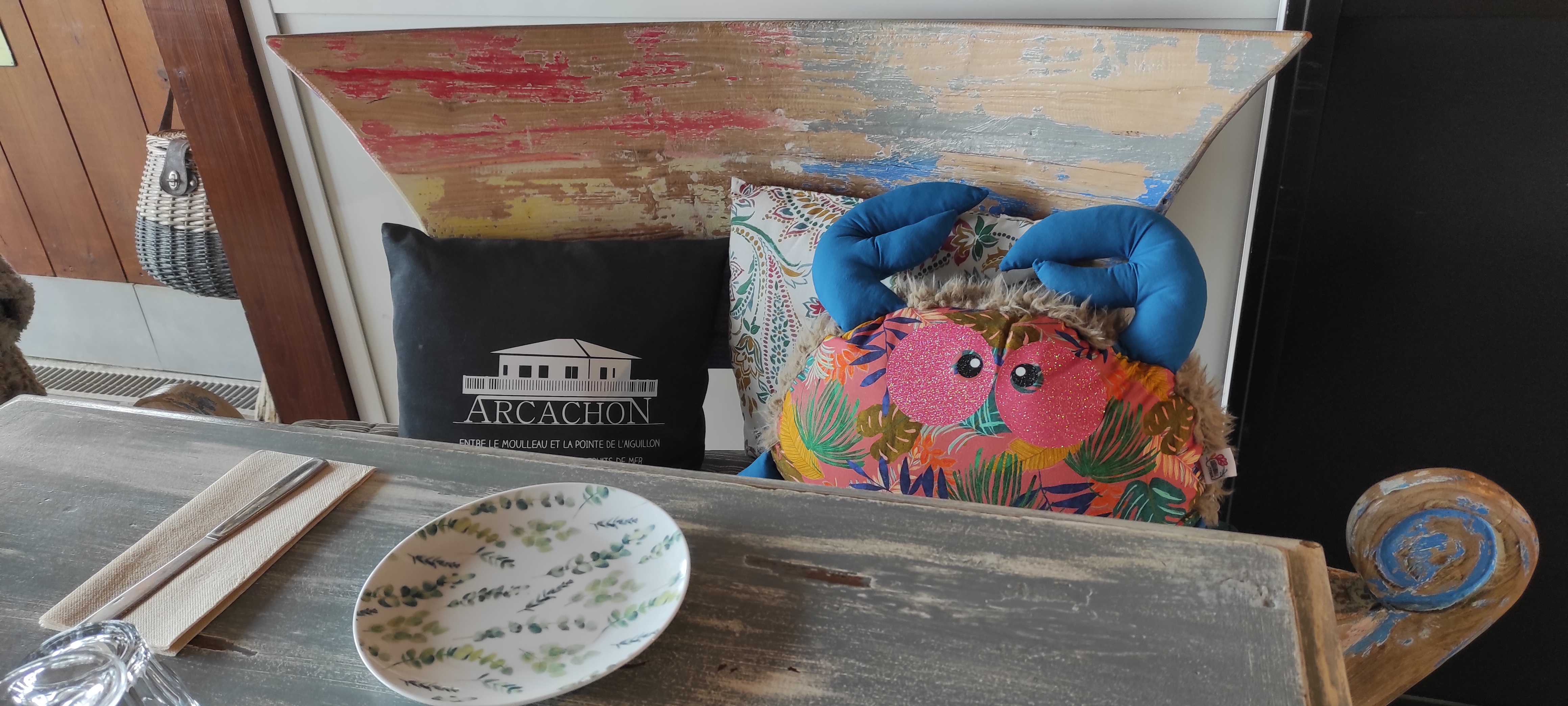 On a adoré le côté kitch qui colle avec le nom... la vaisselle de mamie, la déco de table avec des pierre en forme de poissons... Le service était top et à l'écoute. Les huîtres, les crevettes sont exquises (bassin d'arcachon oblige), mention special pour le beurre demi sel! On recommande vivement