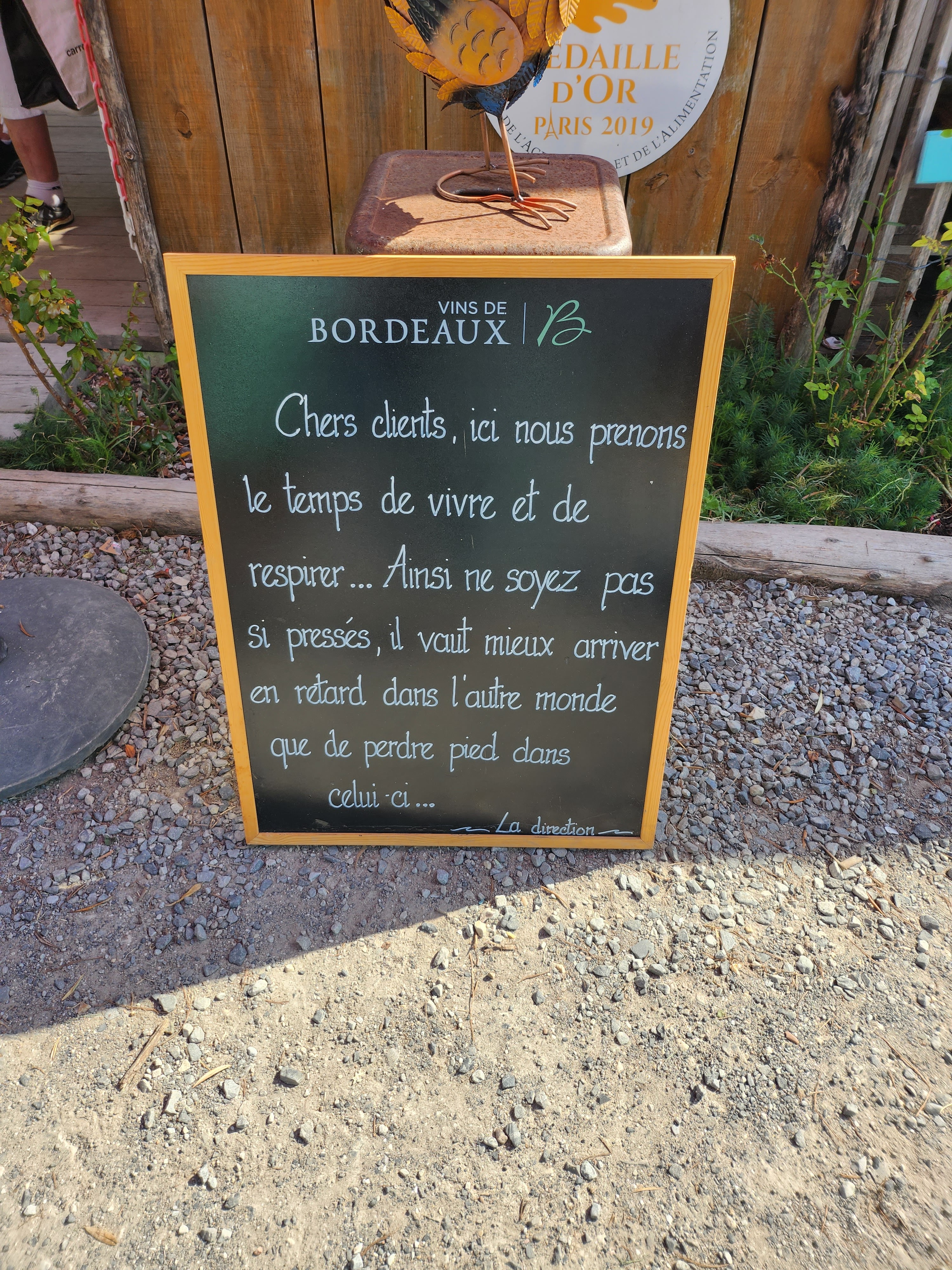 Bonsoir madame où Jeanne...personne ne vous a forcé à venir vous promener sur l’emblématique port de Larros que vous avez pourtant trouvé morde et sans intérêt… Je vois que vous avez trouvé les bulots pas frais ,je transmettrai au marayeur sachant que nous avons pas le droit de faire de cuisson et qu’ils sont arrivés ce matin et la date de fraîcheur était indiqué ,concernant le vinaigre à l’échalote… Il s’agit d’un oubli de votre adorable petite serveuse qui comme vous dites est adorable alors pourquoi ne pas lui demander très gentiment et adorablement bien entendu ...Je vois que vous avez pris le temps de nous mettre un message désagréable quel dommage nous restons une cabane de dégustation et non un restaurant… Effectivemente ne revenait jamais car avec des commentaires pareil j’aurais du mal à vous acceptez sur ma terrasse je vous souhaite malgré tout une très bonne soirée