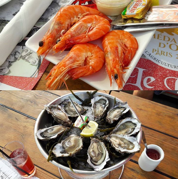 Les huîtres, le rosé, le pain, l'aioli et le cadre sont très biens. Nous avons juste été déçues d'apprendre que les crevettes venaient de l'autre bout du monde...ça ne colleait pas avec l'image produits frais qu''on s'en faisait.