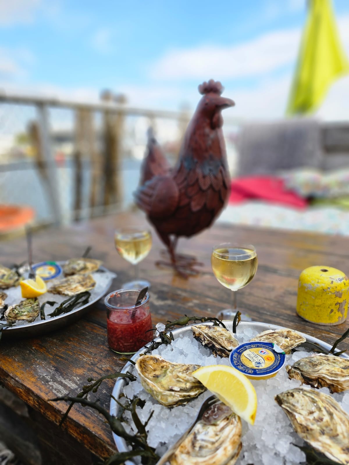Terrasse agréable sur le port, huîtres excellentes et bien sûr très fraîches, dommage que le rosé ne soit servi que l'été