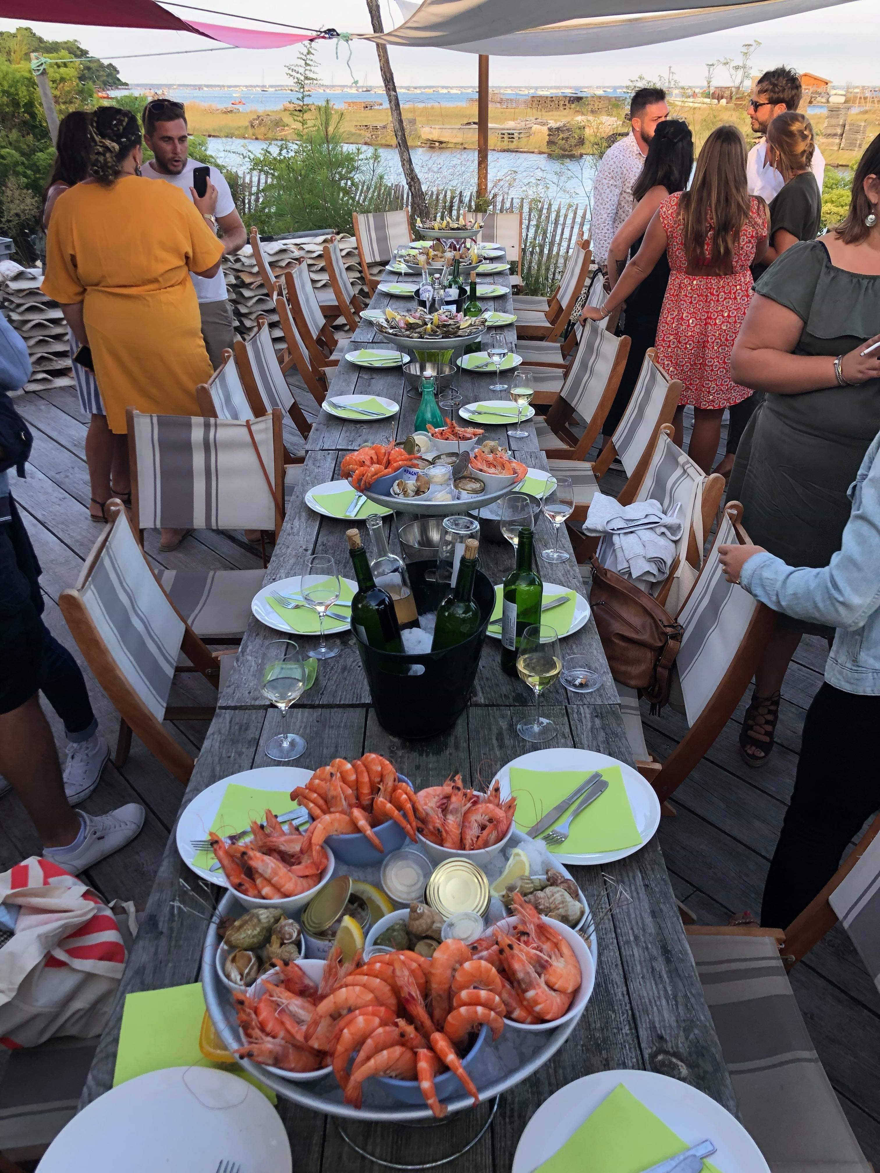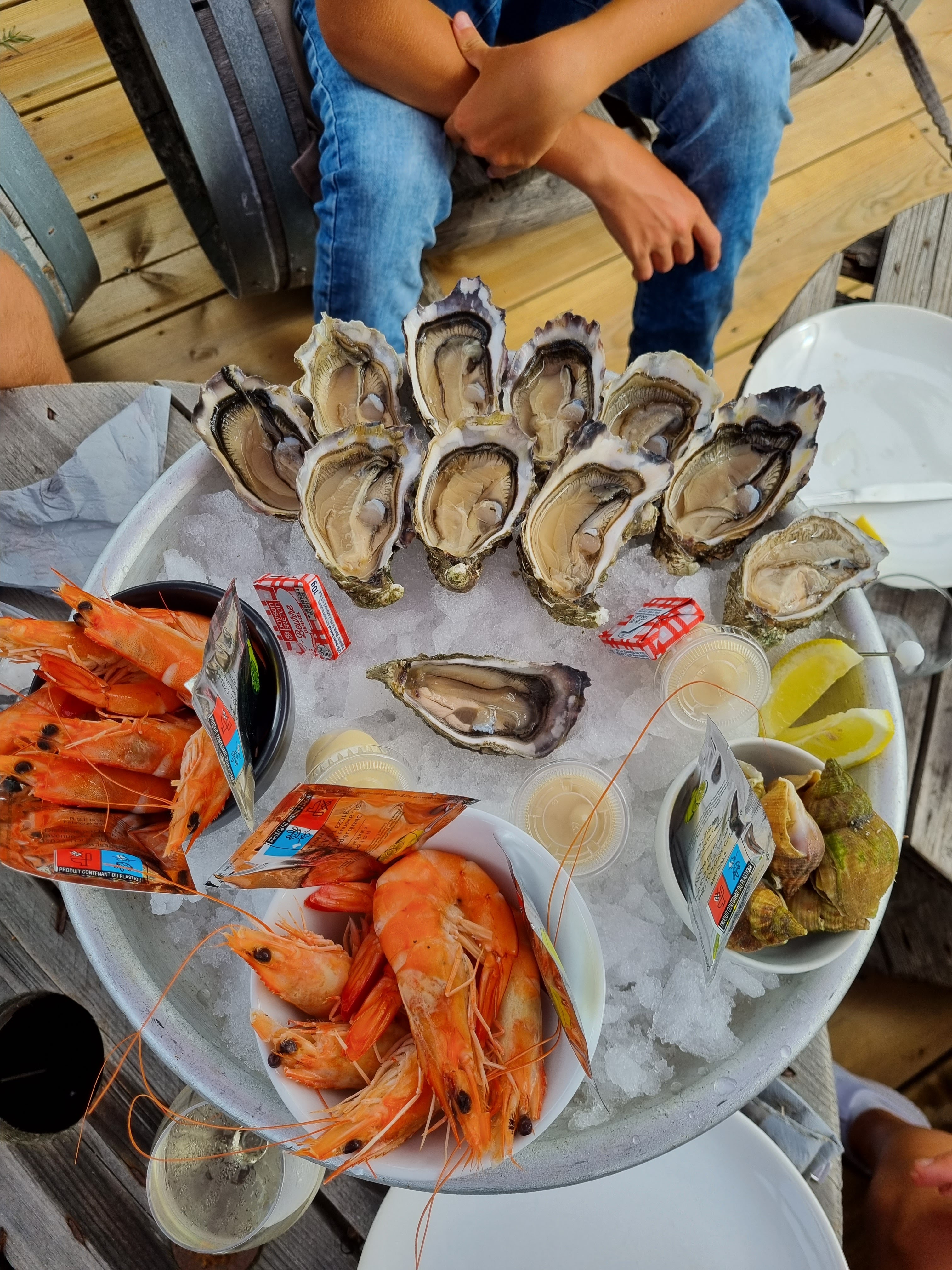 Un petit coin de paradis préservé au bord du bassin pour déguster des huîtres et fruits de mer fraîs avec un verre de vin blanc. On se sent très privilégié, mais chut ....
