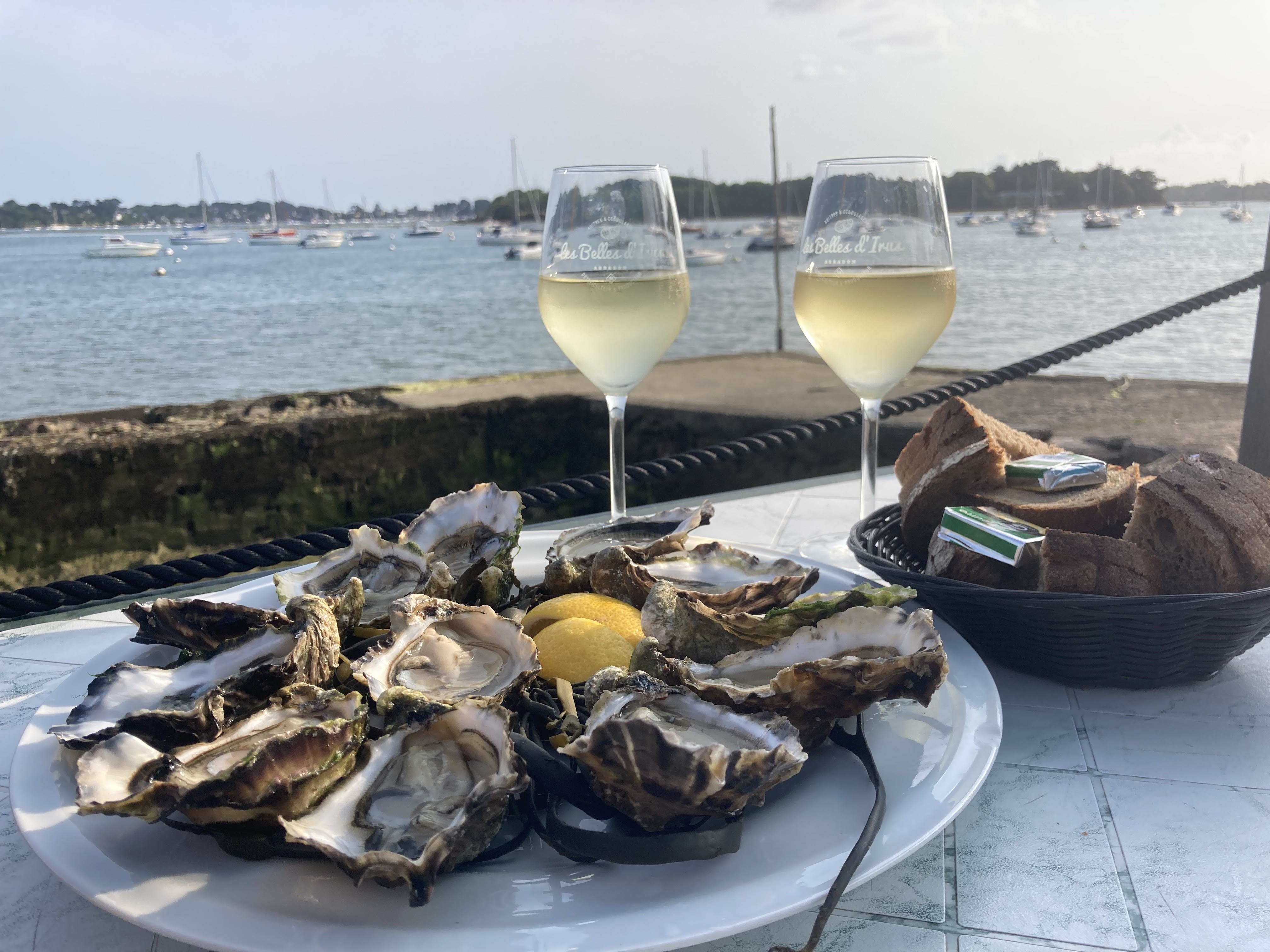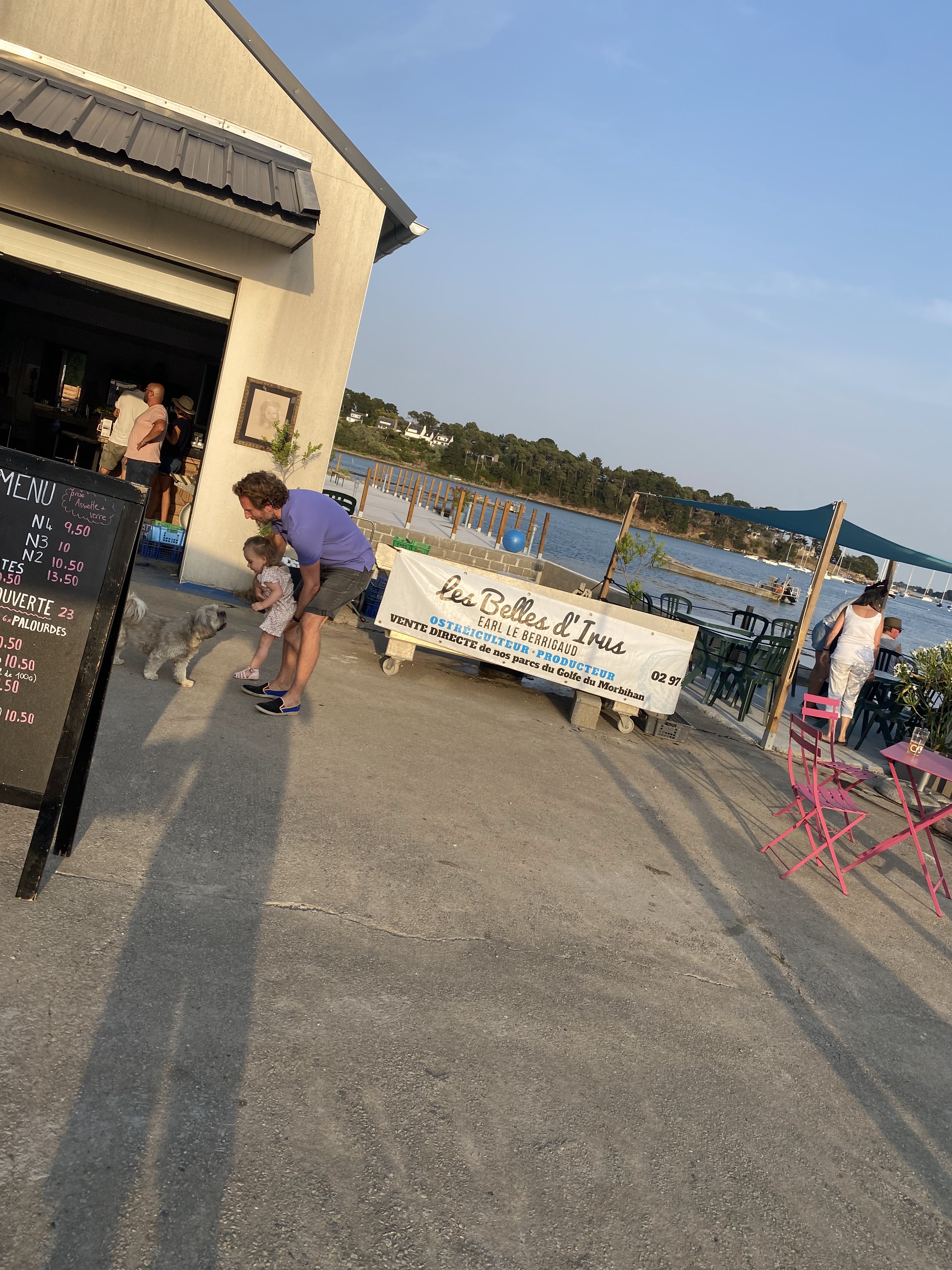 Endroit rêvé pour déguster des huîtres,palourdes avec un petit verre de blanc devant le golfe du Morbihan. Juste génial!