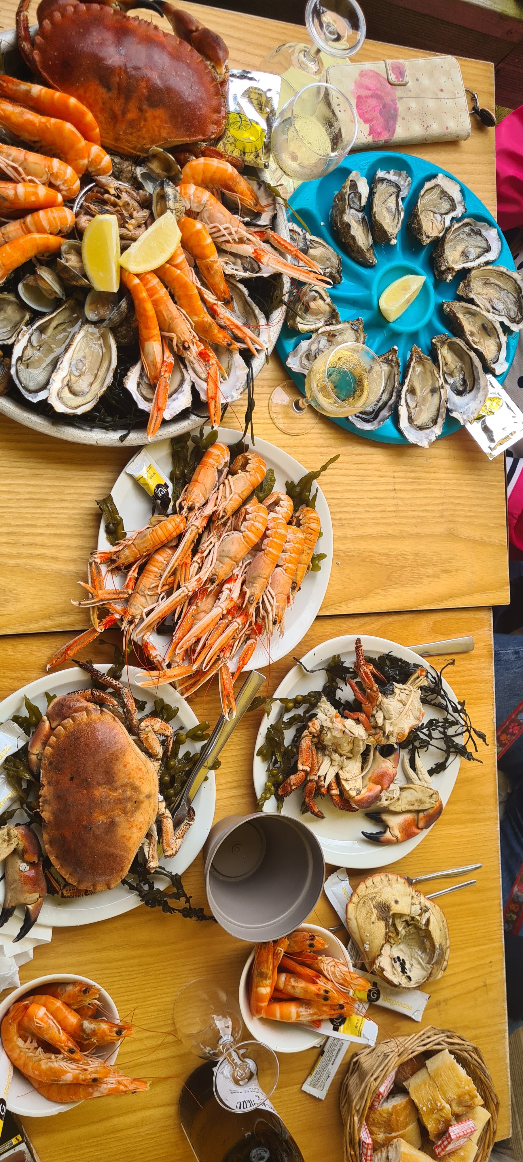 Un délicieux plateau de fruits de mer choisis sur l'étal de l'ostréiculteur et dégustés sur la petite terrasse au bord du golfe...un vrai régal...aussi pour les yeux.