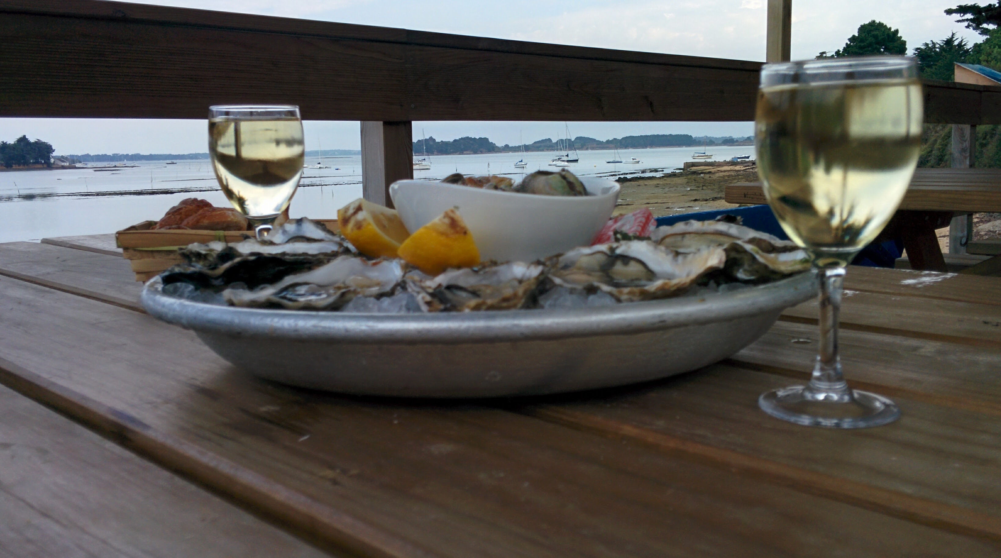 Après une balade face à l'île aux moines un arrêt pour déguster une douzaine d'huîtres et un muscadet la belle vie quoi