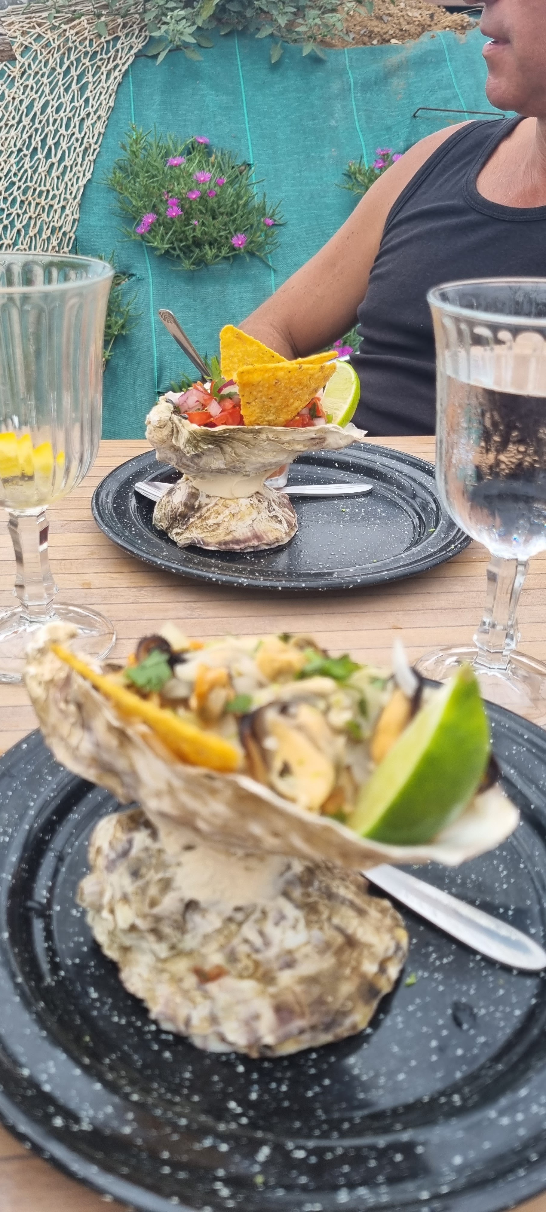 C'était la première fois que nous mangions des huîtres. Au préalable nous avons reçu une tapenade maison avec du pain et de délicieuses moules. Les huîtres, les crevettes et le vin que nous avons commandés étaient délicieux ! Le service est très hospitalier (également en anglais) et sympathique ! Nourriture délicieuse avec une vue magnifique. Hautement recommandé
